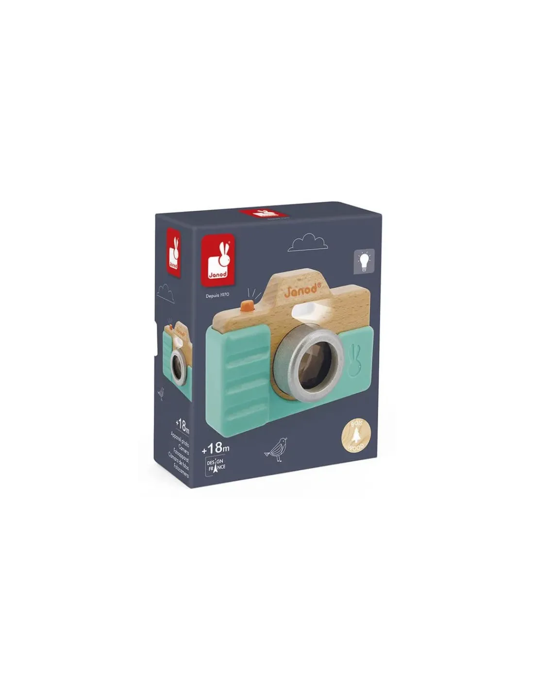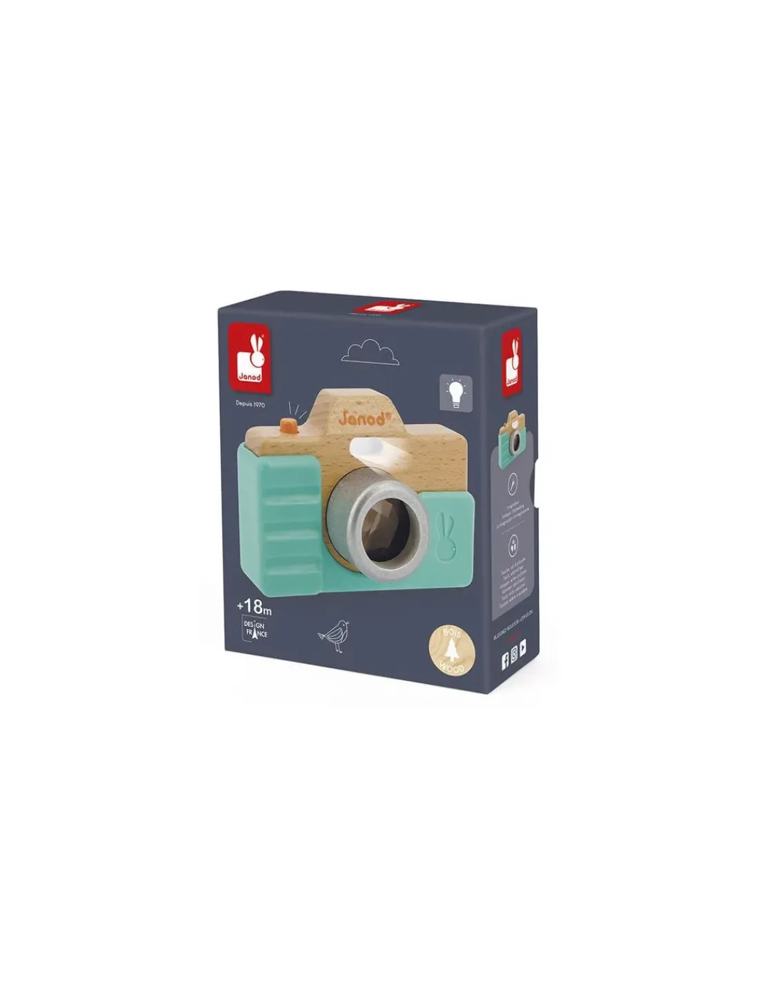 Découvrez l’appareil photo de Janod, un appareil photo en bois pour faire comme les grands. Grâce à ce jouet d’imitation, votre enfant s’amusera à faire des selfies comme papa et maman!