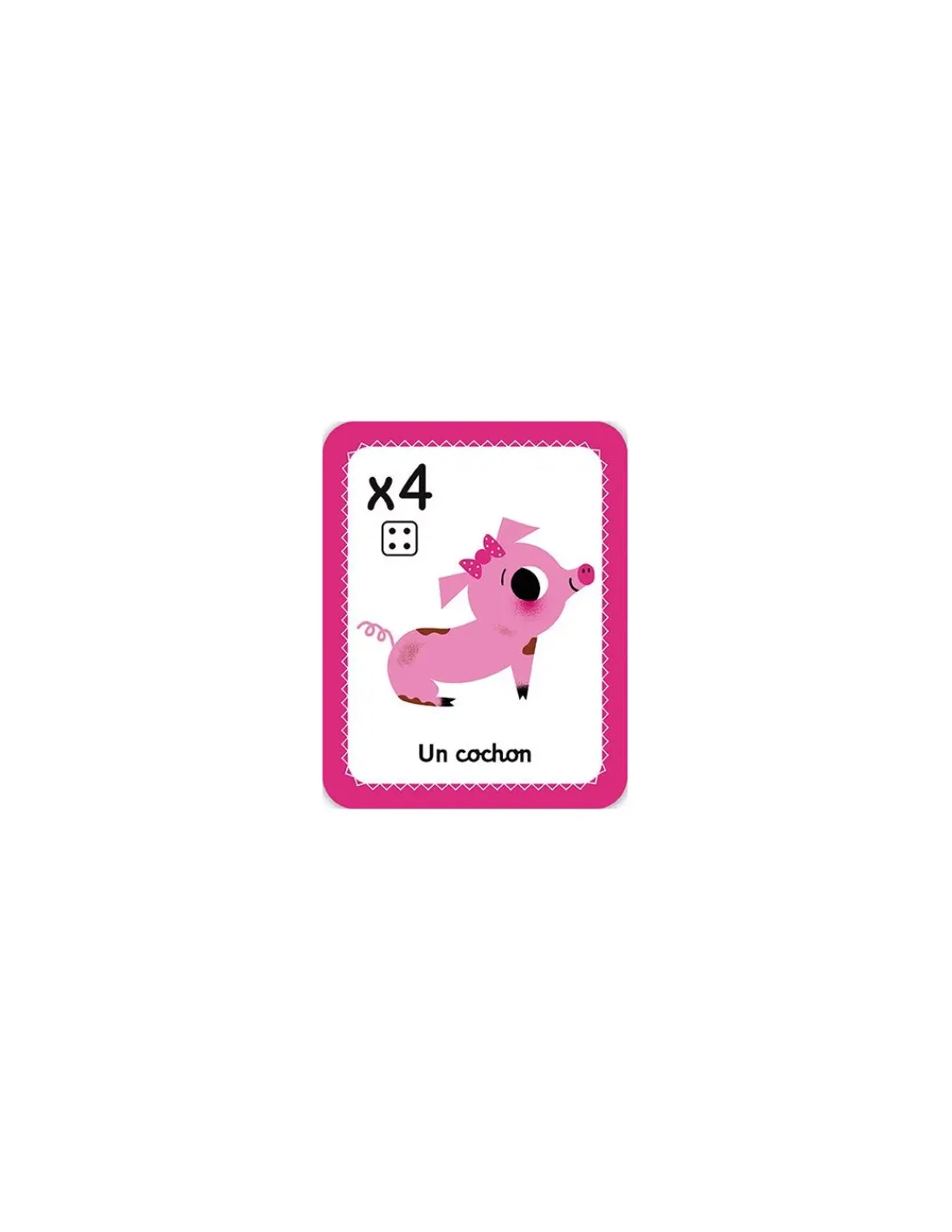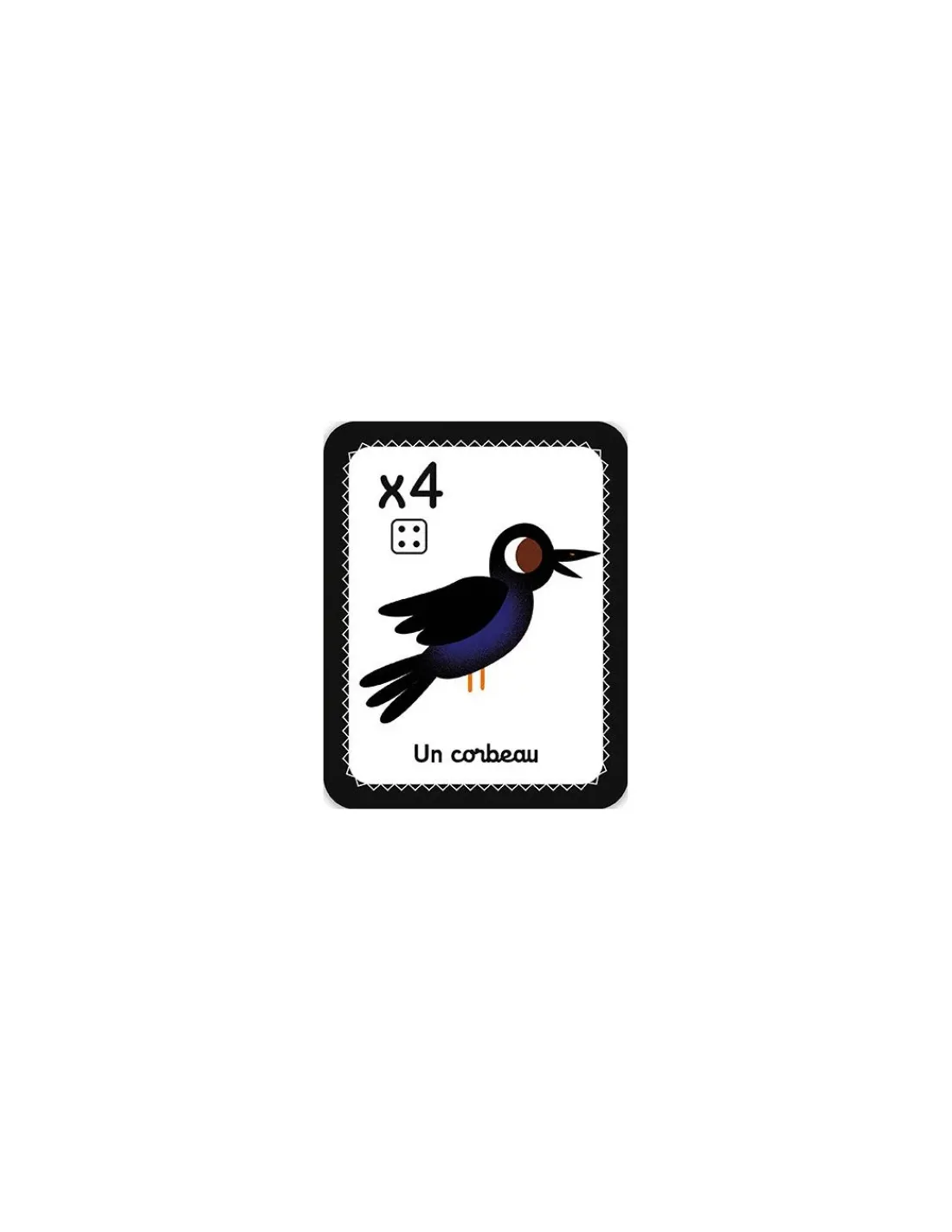Ce jeu éducatif contient un grand plateau de jeu recto verso avec un pattern avec fond blanc d’un côté et une grande illustration de l’autre, 80 cartes recto verso, 8 jetons et la règle du jeu.
