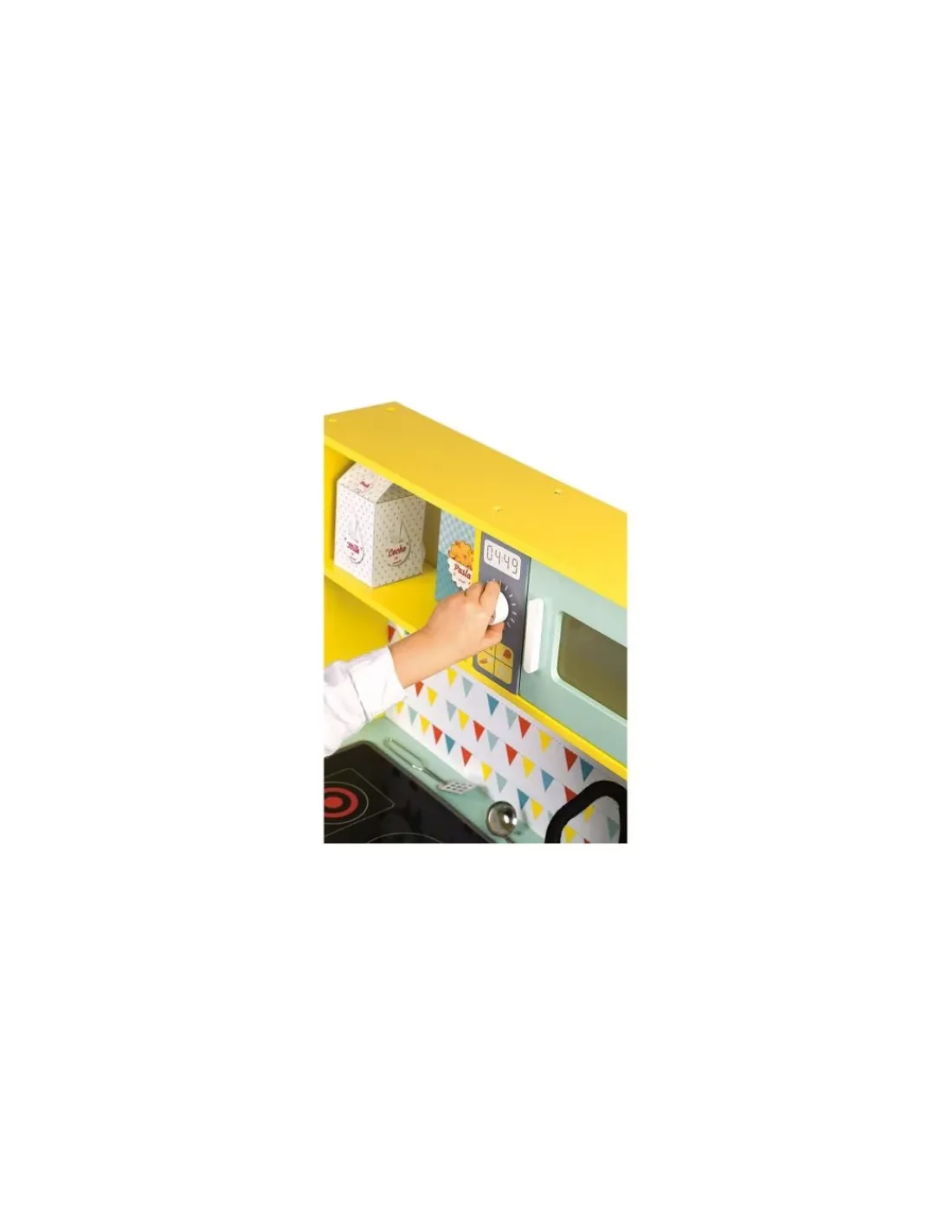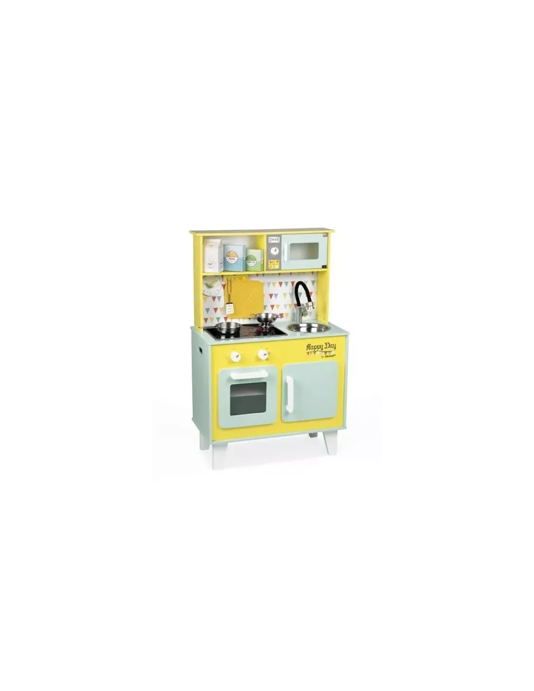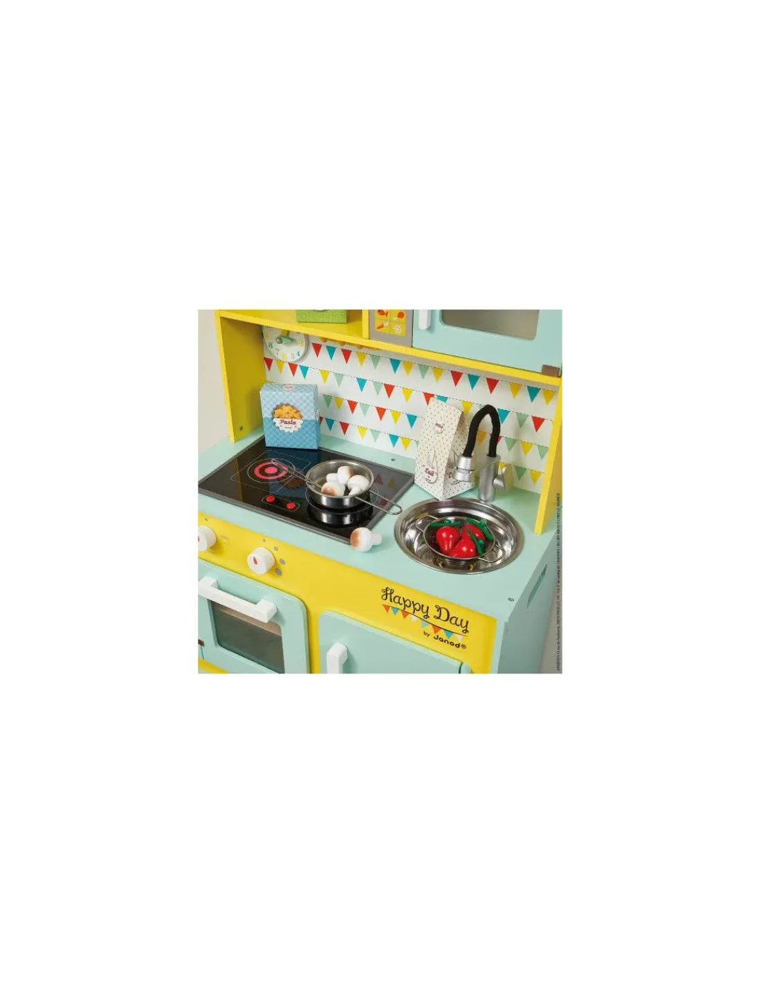 Découvrez la cuisine happy day de Janod, une cuisine colorée toute en bois pour les filles et les garçons qui aiment cuisinier et préparer de bons petits plats. Cette cuisine équipée comprend 7 accessoires pour cuisinier (une poêle, une passoire, une spatule, une manique et 3 boites d’aliments en carton) ainsi que du son et de la lumière. Un cadeau idéal pour les enfants à partir de 3 ans.