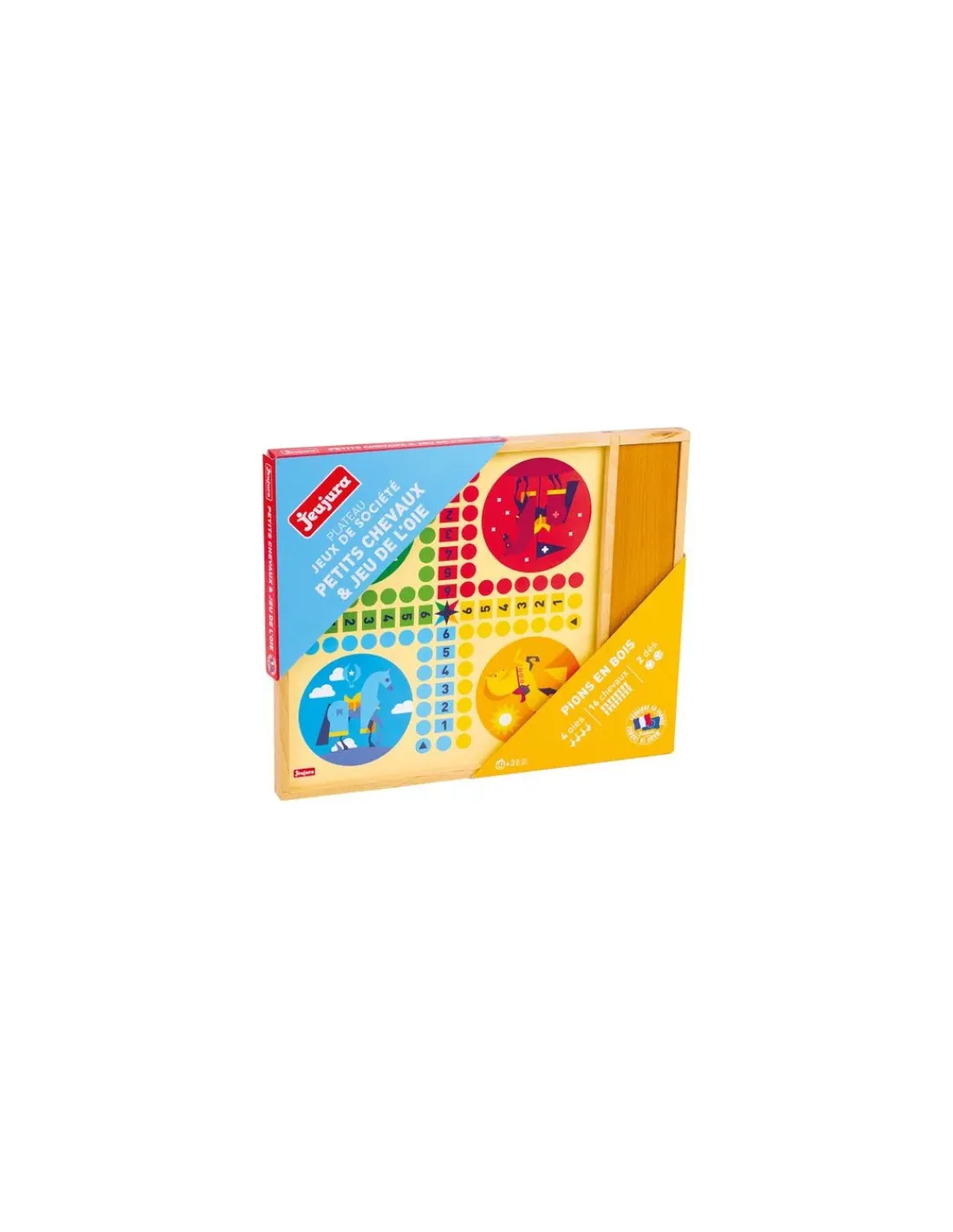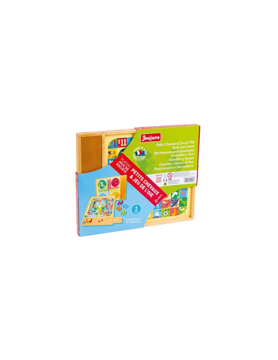 Découvrez le coffret de jeux de l’oie et petits chevaux de Jeujura, un coffret fabriqué en France, un coffret avec un plumier pour trouver facilement les pièces de jeu. Un magnifique jeu à offrir pour jouer en famille ou entre amis à partir de 3 ans.