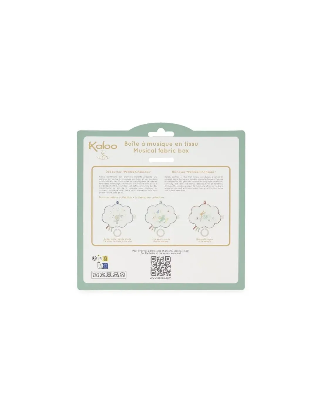 Découvrez la boite à musique Brille brille petite étoile de la collection Petites chansons de Kaloo, une magnifique peluche musicale en forme de nuage à accrocher pour apaiser bébé. Un cadeau de naissance plein de douceur qui bercera votre enfant dès sa naissance.
