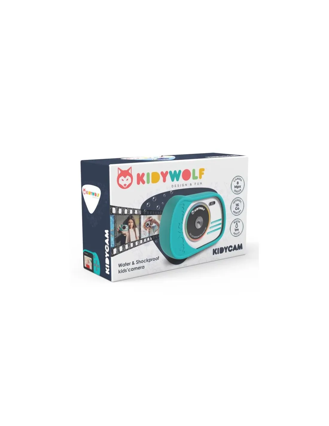 Découvrez l’appareil photo Kidycam cyan de Kidywolf, un appareil photo numérique fun qui permet aux enfants de capturer de jolis moments comme les grands!