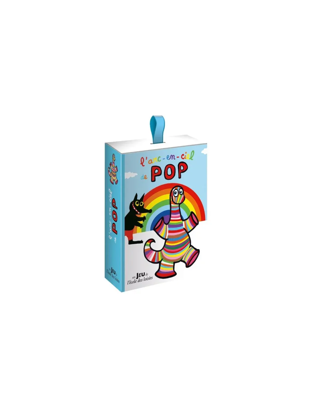 Il pleut, il fait beau… regardez le bel arc en ciel! Tous ensemble, aidez Pop le gentil dinosaure à construire un arc-en-ciel et à l’atteindre avant le loup. À tour de rôle, les joueurs retournent une carte. Pour faire avancer Pop, il faut que la couleur corresponde à la case sur laquelle Pop se trouve. Lorsque le dinosaure arrive au pied de l’arc-en-ciel et que tous les morceaux d’arcs ont bien été assemblés, les joueurs ont gagné! Si c’est le loup qui arrive le premier, c’est lui qui a gagné. Attention aux cartes spéciales qui vont venir chambouler la partie…