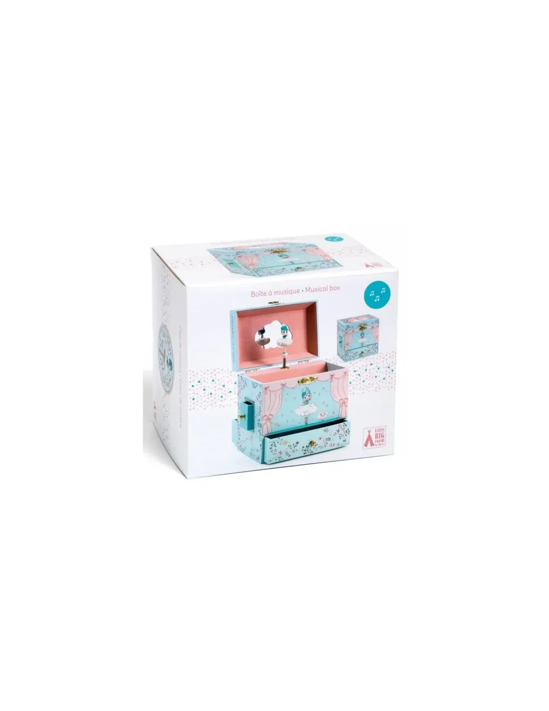 Découvrez la boite à musique « Ballerine en scène » de Djeco, une jolie boite à bijoux musicale qui plaira beaucoup aux jeunes enfants grâce à ses compartiments secrets et sa la mélodie « Romance de l’amour ».