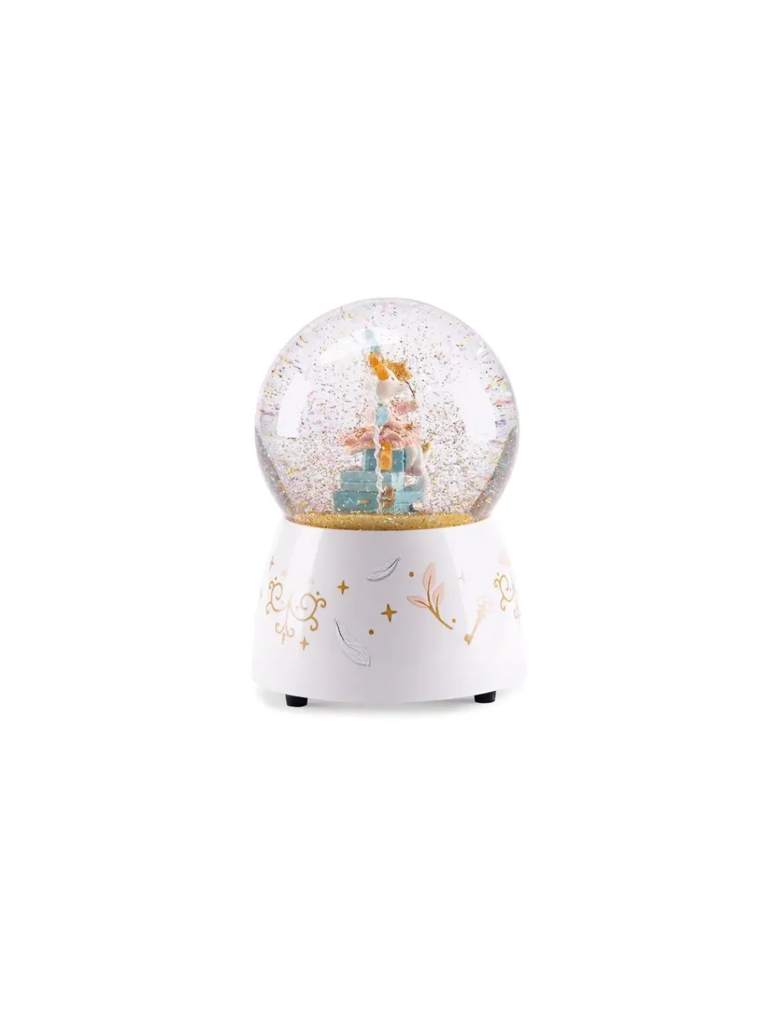 Une boule à neige musicale avec la petite souris et son oie qui font la fête au milieu des paillettes holographiques. En plus de décorer la chambre, une jolie mélodie viendra bercer bébé au moment du coucher