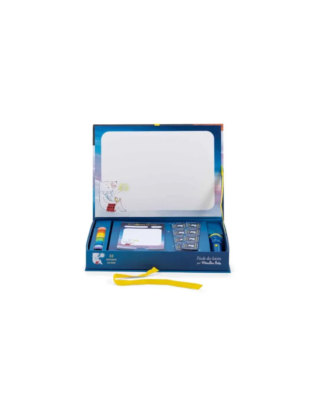 Découvrez le coffret cinema 32 histoires du soir l’école des loisirs de Moulin Roty, un coffret cadeau idéal pour retrouver les histoires de l’école des loisirs. Le petit cinéma de l’école des loisirs avec 32 histoires emblématiques à projeter dont 25 aventures éditées pour la première fois en version lampe à histoires.