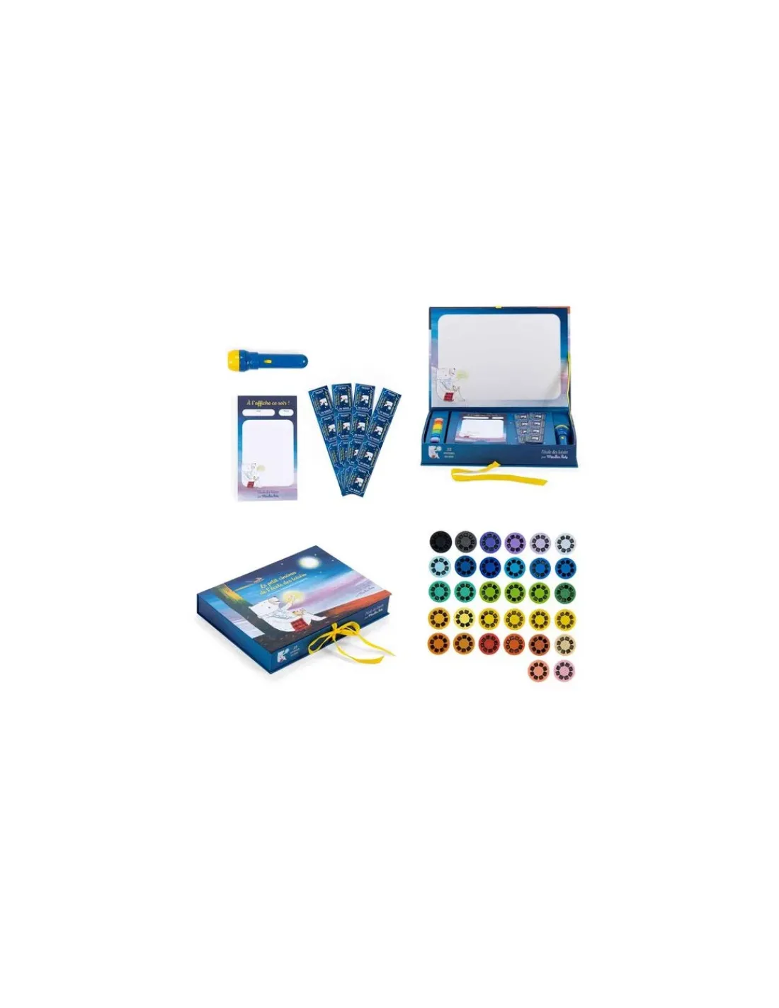 32 histoires à projeter sur la boite ou au mur pour faire comme au cinema à partir de 4 ans. Ce coffret cadeau comprend un bloc de programmes, des tickets de cinéma, une lampe et 32 disques diapositives. Chaque disque projeté sur le mur raconte une histoire…