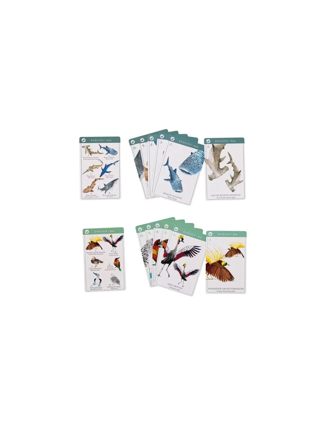 Partez à la découverte de la diversité animale à travers ce jeu de 7 familles revisité. Le but du jeu est de reconstituer le plus grand nombre de familles au complet.