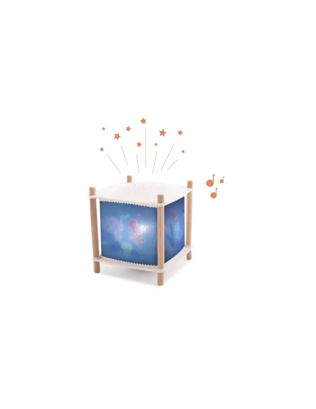 En fonction veilleuse apaisante : un film tourne devant les yeux apaisés et ébahis de votre enfant. En fonction projecteur d’étoiles : la lanterne projette des étoiles au plafond comme si votre chambre se transformait en ciel étoilé. En fonction veilleuse musicale : 4 berceuses sont préenregistrées et vous pouvez diffuser d’autres histoires ou musiques de votre choix grâce à la connexion sans fil. En fonction détecteur de pleurs : la veilleuse se rallume automatiquement.