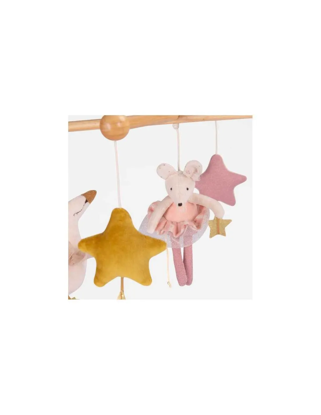 Découvrez le mobile musical croisillon de la collection La petite école de danse de Moulin Roty, un mobile en bois aux couleurs tendres pour éveiller la vue et l’ouïe de bébé le jour et l’aider à s’endormir tout en douceur le soir.
