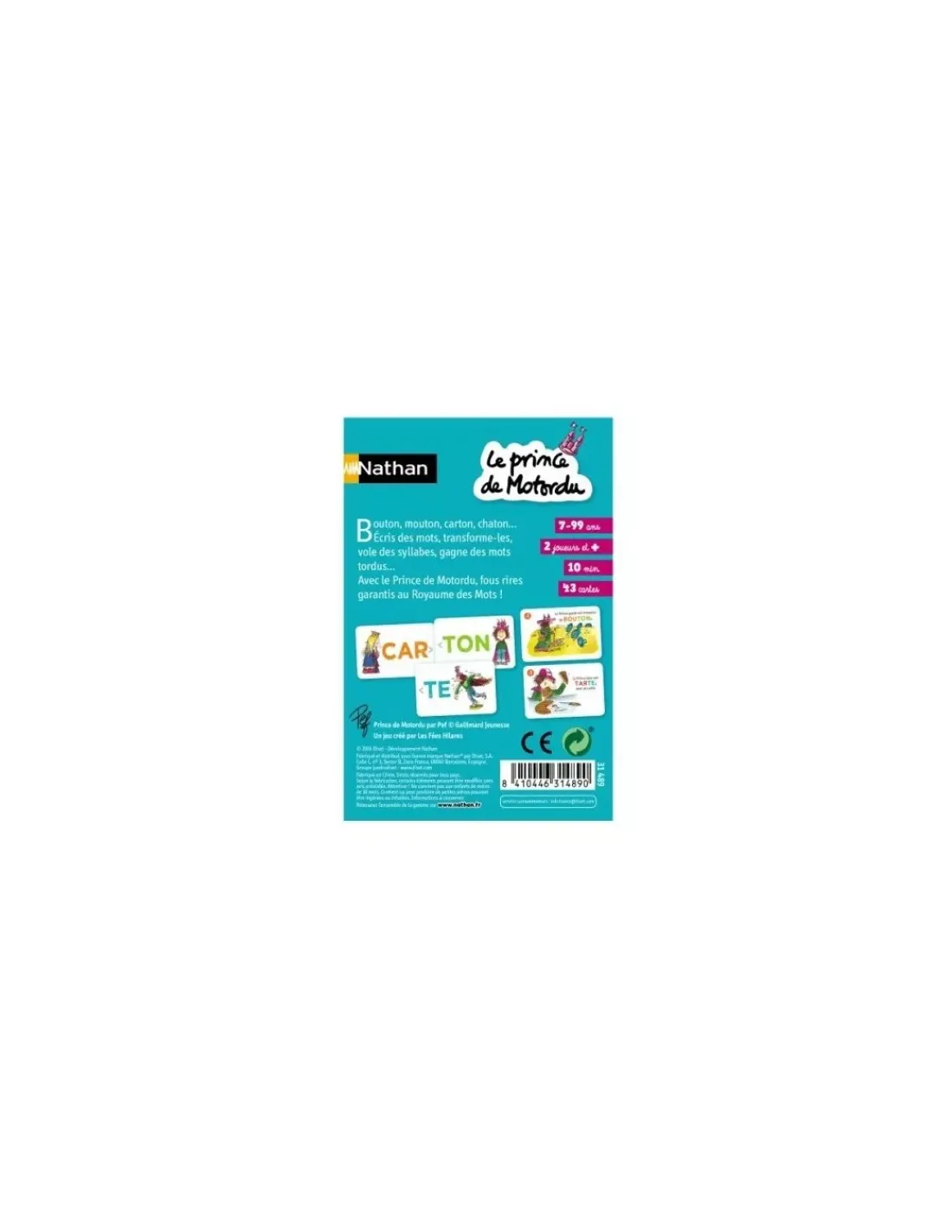 Découvrez le jeu de cartes le prince de Motordu de Nathan, un jeu éducatif pour s’amuser avec les syllabes et les mots à partir de 7 ans.