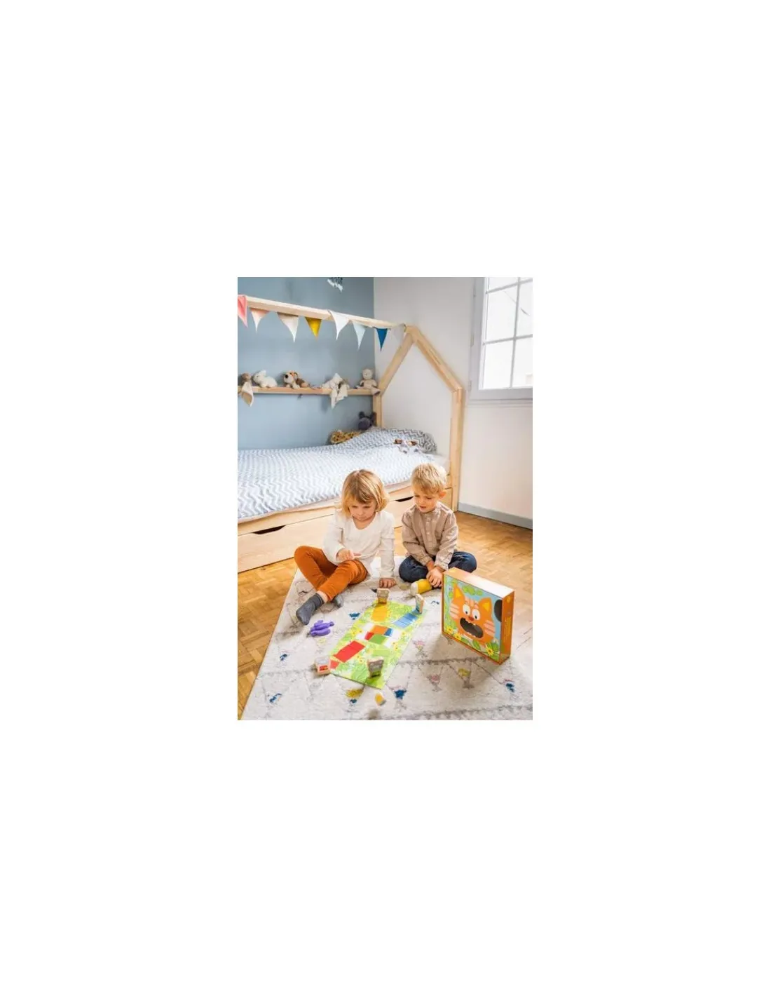 Vite, aide les petites souris à regagner leur maison avant que le chat n’ait fini son repas et n’arrive pour toutes les attraper! A chaque lancé de dé, les joueurs avancent une souris ou donne un poisson au chat.