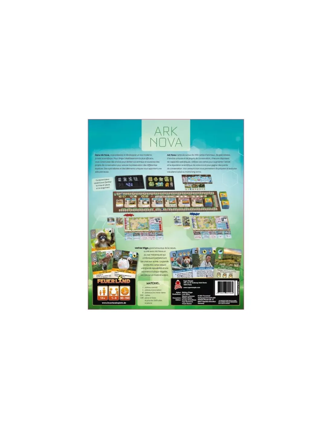 Découvrez le jeu Ark Nova de Super meeple, un jeu de draft et de collection pour jouer de 1 à 4 joueurs à partir de 14 ans où vous allez préparer et développer un zoo moderne à visée scientifique. L’As d’or 2023 dans la catégorie « Jeu de l’année expert ».