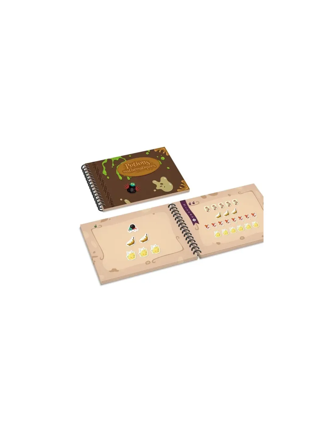 Potions mathématiques est conçu pour aider les enfants de 3 ans à 6 ans et demi à apprendre à compter et à reconnaitre les nombres écrits de 1 à 10. Le fait d’avoir à dénombrer des ingrédients farfelus comme des bananes pourries et des chaussettes qui puent les motive dans leur apprentissage.