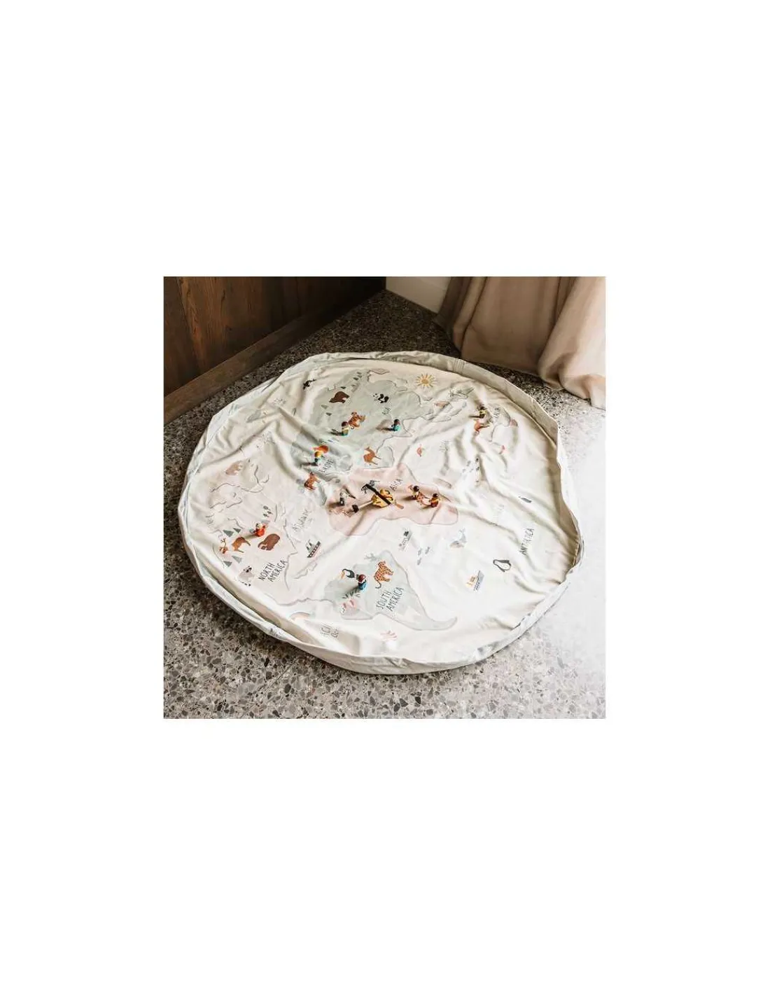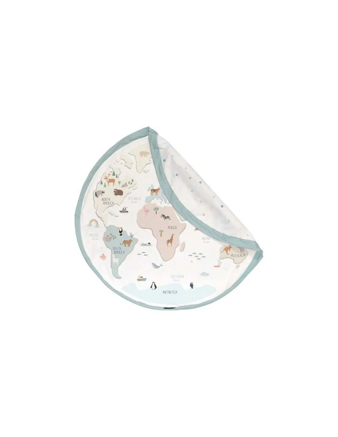 Découvrez le grand sac à jouets worldmap colors de Play&Go, grand tapis de jeu et un sac de rangement pratique pour les jouets de votre enfant. Solide, pratique et coloré pour l’emporter partout avec vous. Un sac en toile réversible avec une carte du monde d’un côté et des formes géométriques de l’autre, un sac pour transporter ses jouets, ses peluches, ses affaires de plage…