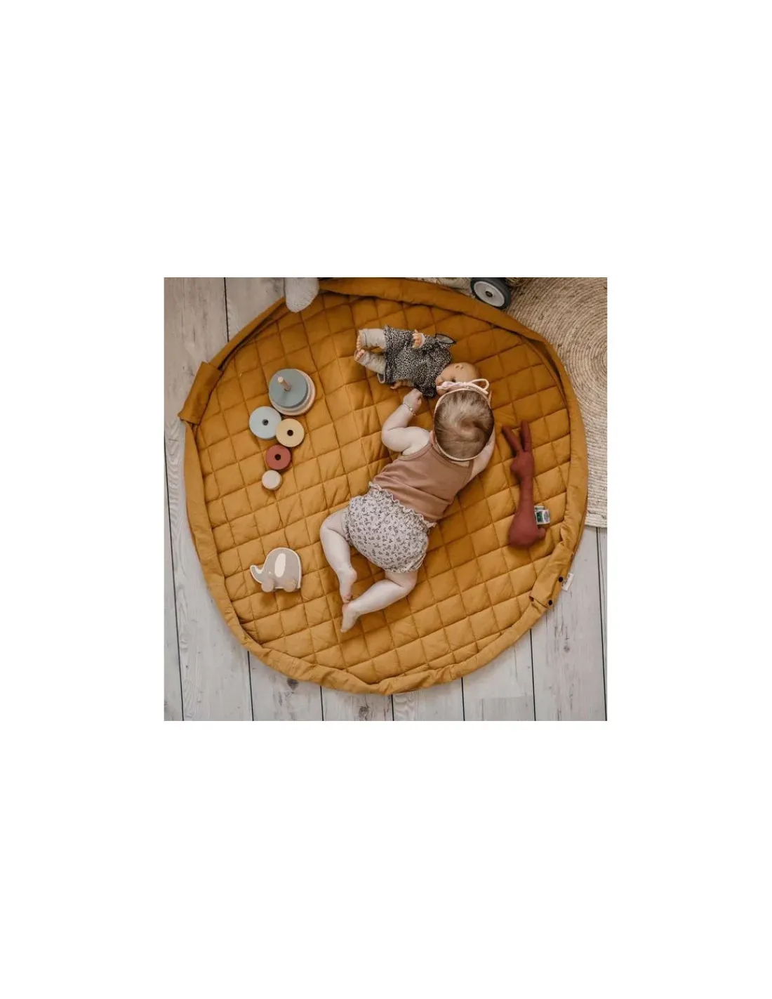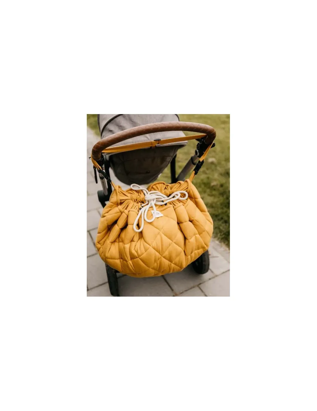 Découvrez le tapis d’éveil bio 3 en 1 jaune moutarde de Play&Go, un cadeau de naissance utile servant à la fois de tapis d’éveil, de sac de rangement et de sac à langer. Un accessoire très pratique qui ne quittera plus les jeunes parents lors de leurs sorties.