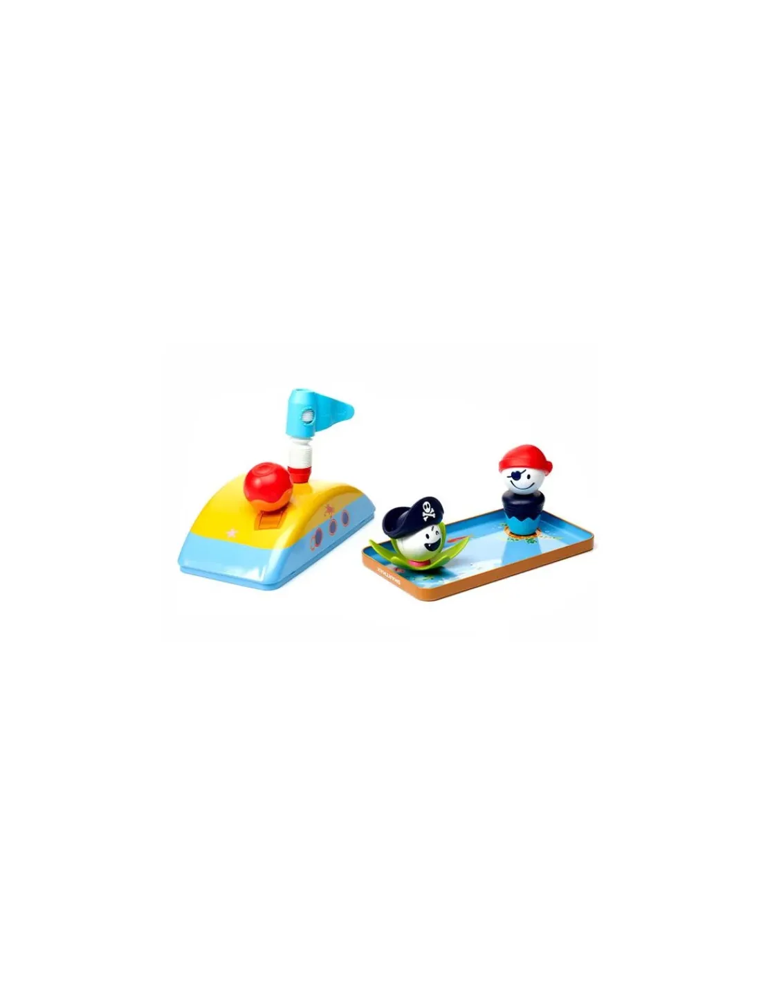 Petits matelots, voyagez à bord de votre joli bateau pour atteindre l’île au trésor. Combinez les différents éléments magnétiques et la boîte métallique pour créer vos saynètes de pirates. Puis utilisez ce bateau pour ranger toutes les pièces.