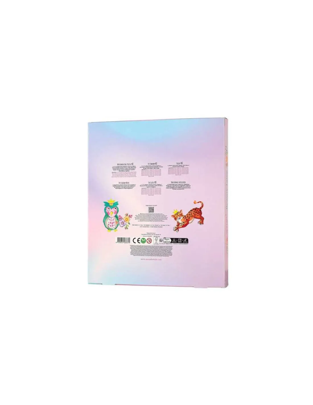 Ce coffret cadeau contient des 3 vernis à ongles à base d’eau, 12 fards à paupières, 2 fards à joue, 2 brillants à lèvres, 2 applicateurs et des stickers d’ongles.