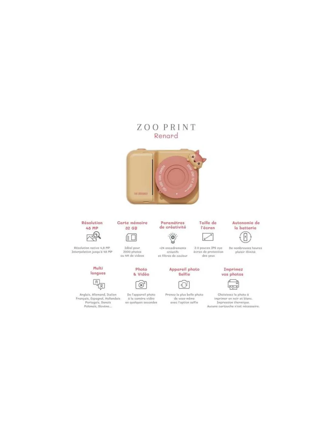 Découvrez l’appareil photo Renard de la collection Zoo Print de The Zoofamily, un appareil photo numérique qui émerveillera les enfants de 5 à 11 ans. Un magnifique cadeau qui leur permettra de capturer les moments les plus précieux, y compris grâce à son option selfie, et de les imprimer facilement.