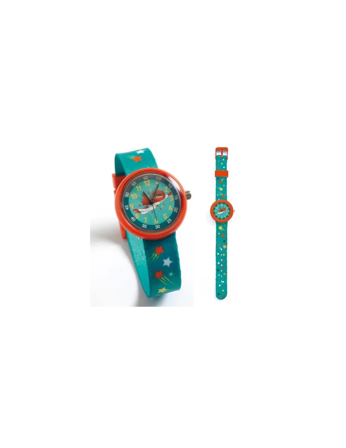 Découvrez la montre super héros Ticlock de Djeco, une montre élégante et colorée pour apprendre à lire l’heure en s’amusant. Avec son bracelet vert avec des étoiles, vous allez beaucoup apprécié son cadran illustré d’un super héros.