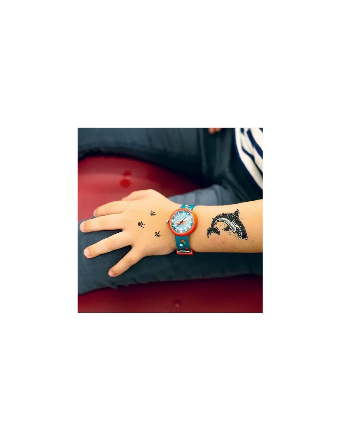 Votre enfant appréciera la douceur de son bracelet en polyester et la réglera facilement à son poignet avec la fermeture par boucle ardillon.