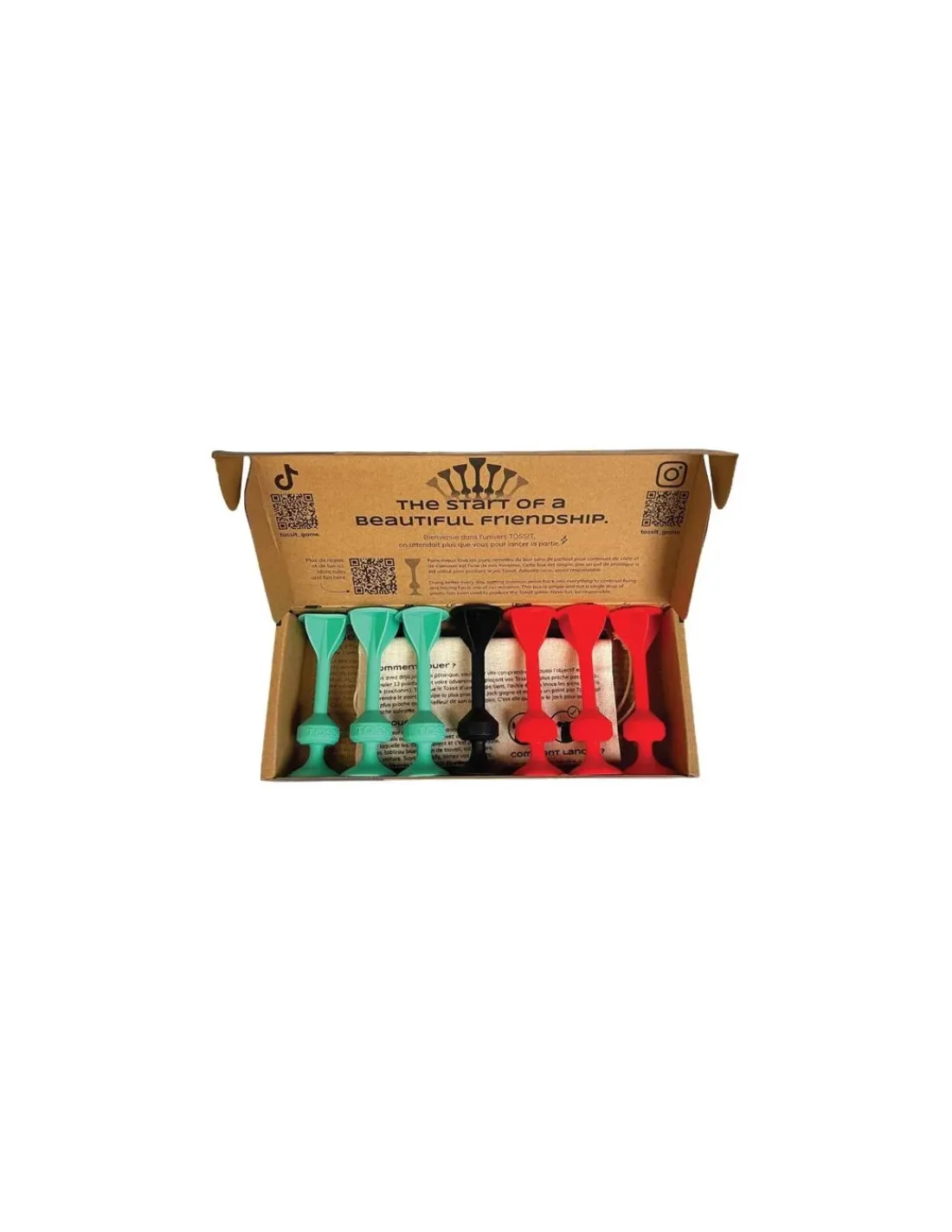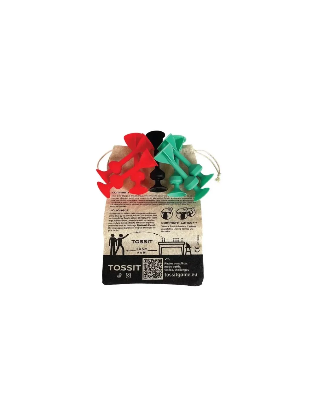 Découvrez le jeu Tossit Red Cyan, un jeu d’adresse et de lancer composé de fléchettes à ventouse, un mélange de pétanque, fléchettes, Molkky qui se joue à l’intérieur ou à l’extérieur, au sol ou à la verticale à partir de 5 ans.