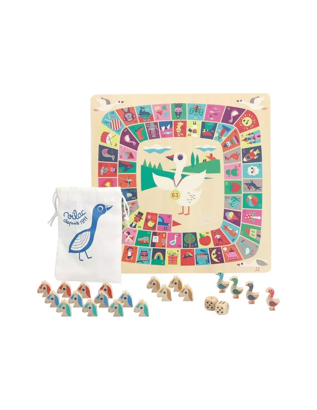 Découvrez le coffret de jeux dada oie illustré par Ingela P. Arrhenius de Vilac, un coffret en bois vintage et rétro comprenant un jeu de l’oie et un jeu des petits chevaux pour jouer à partir de 4 ans.