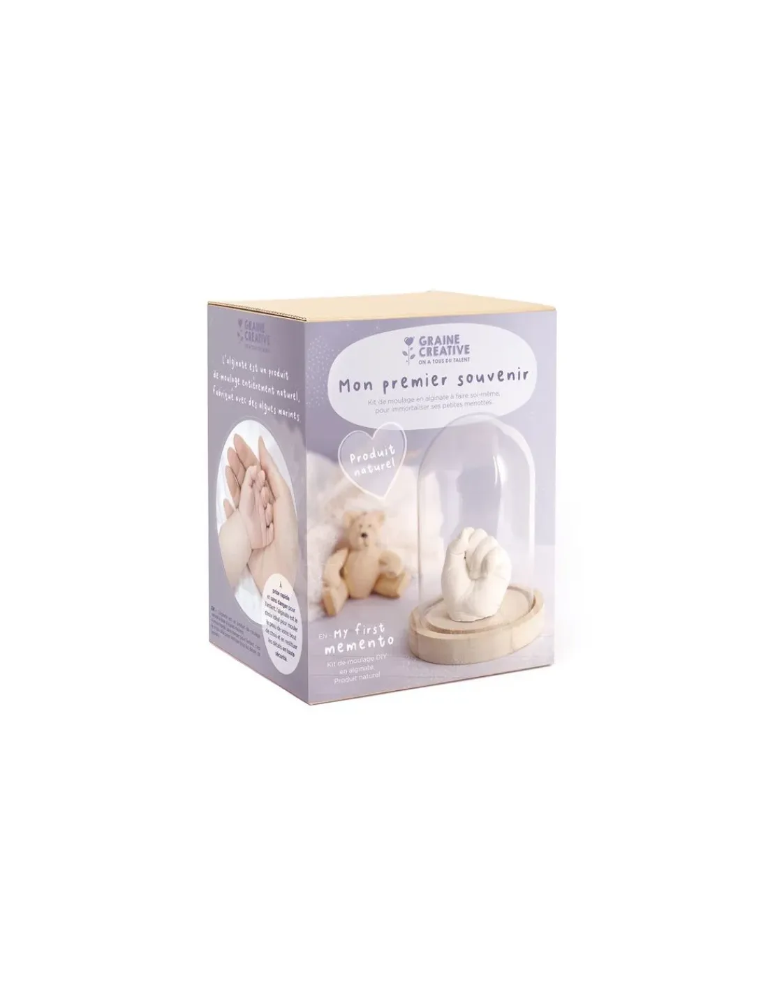 Découvrez le Kit moulage mon premier souvenir de Graine créative, un cadeau de naissance original pour reproduire facilement la main de son bébé.