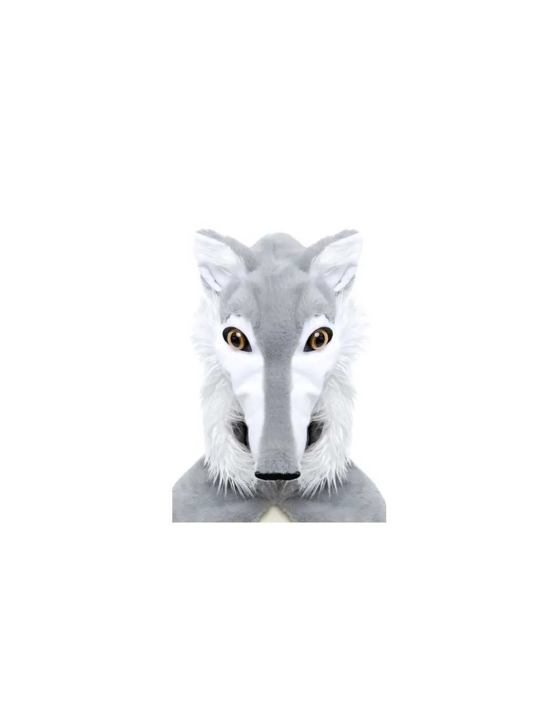 Elle présente un visage de loup réaliste, une fourrure blanche autour du cou, une queue blanche et des pattes attachées. Elle est dotée d’une boucle élastique à l’intérieur des pattes pour permettre à votre enfant de les saisir facilement.