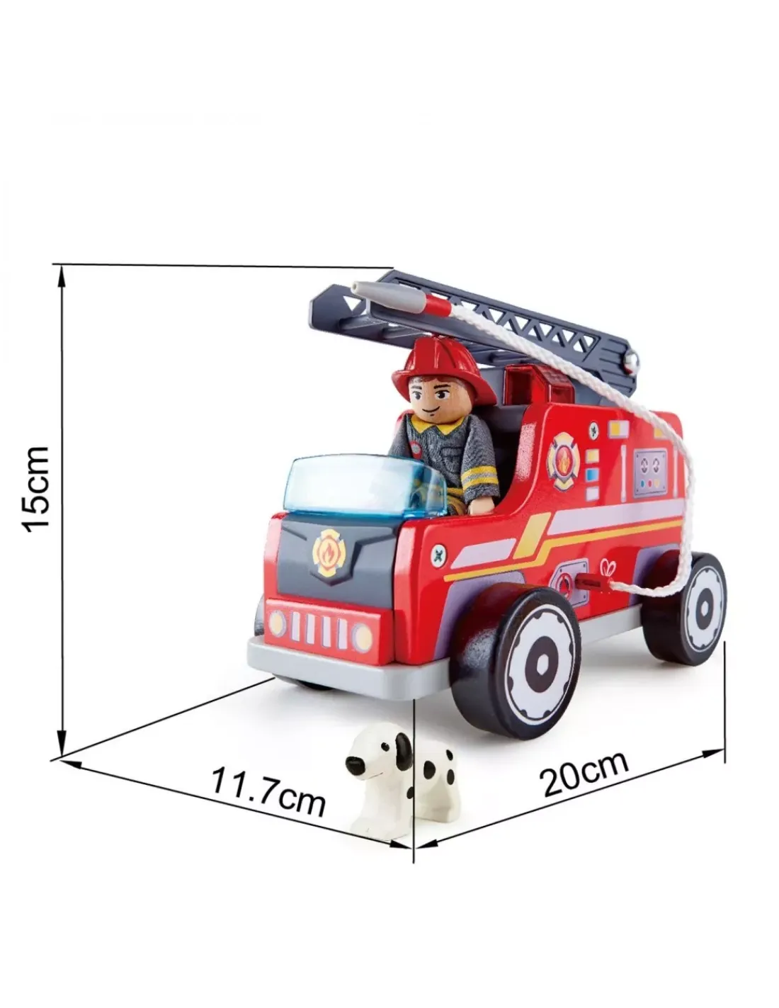 Votre enfant s’inventera des histoires de pompiers avec le personnage qui grimpera sur la grande échelle pour sauver les innocents des flammes et son fidèle chien sauveteur.