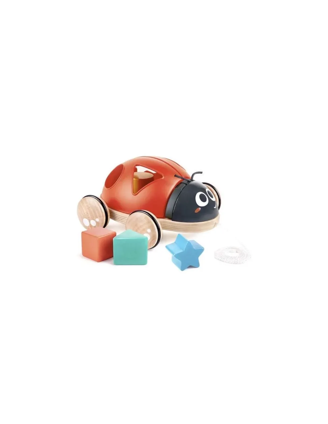 Cette belle coccinelle multifonctions accompagnera votre enfant dans ses premiers pas. Étoile bleue, pyramide verte, cylindre jaune, cube rouge… votre enfant s’amusera à trouver la cavité sur le dos de l’animal par laquelle il pourra faire rentrer chaque bloc. Il pourra ensuite récupérer les formes en soulevant les ailes de la coccinelle.