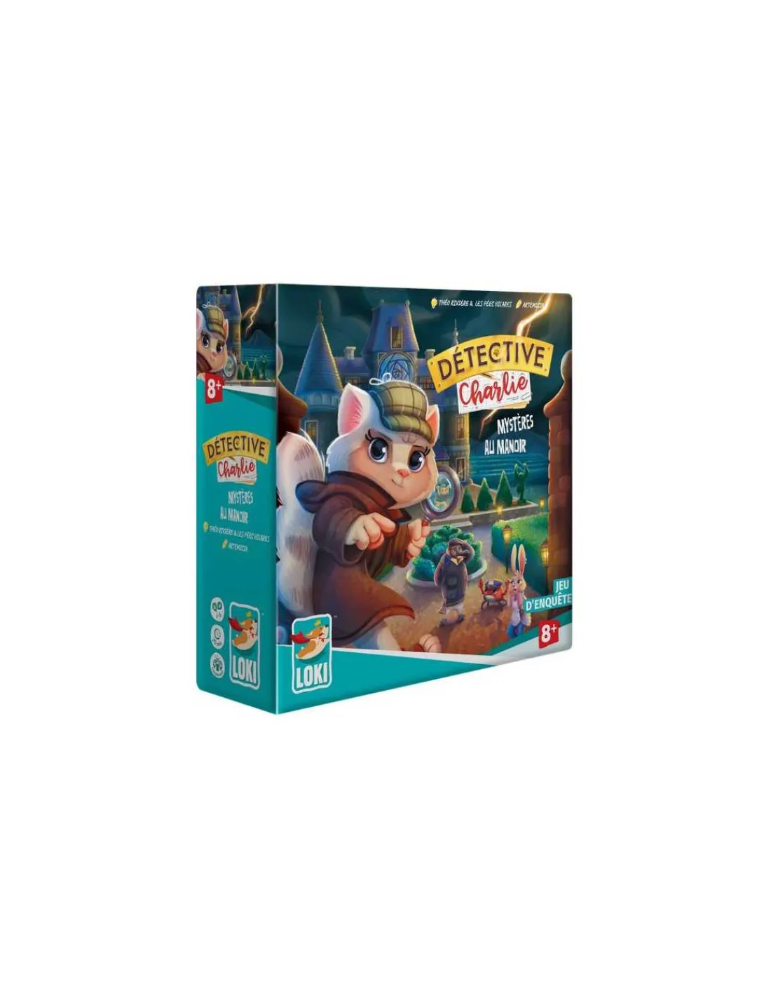 Découvrez le jeu Détective Charlie : Enquête au manoir de Loki, un jeu d’enquête aux illustrations colorées et aux histoires particulièrement mignonnes. Un jeu coopératif composé de 6 enquêtes palpitantes à résoudre en famille dès 8 ans.