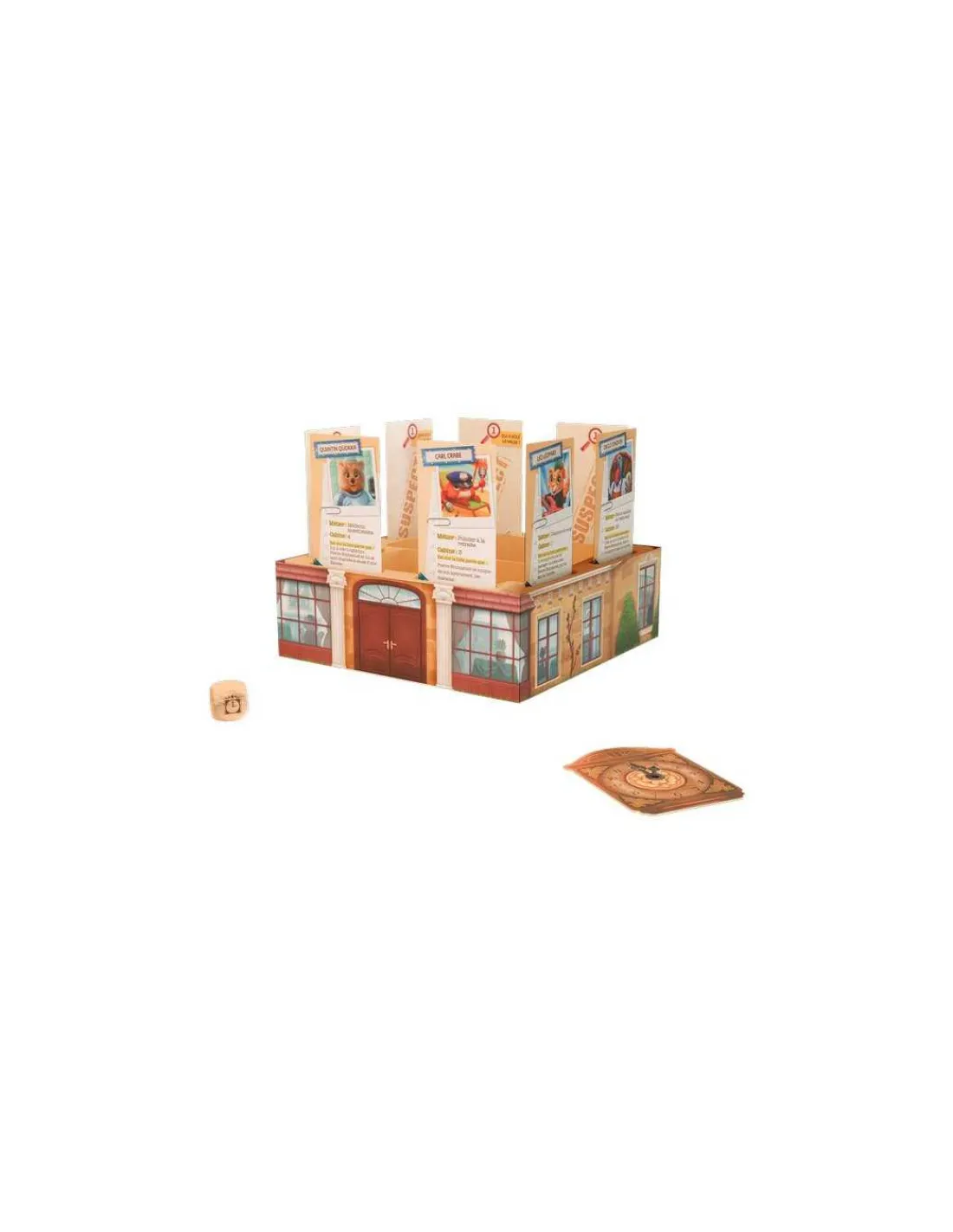 La boite de jeu comprend 1 dé, 6 enveloppes, 1 pion « Détective Charlie », 1 manoir, 1 horloge, 1 carnet de détective, 6 paquets « Enquête » et 1 livret de règle.