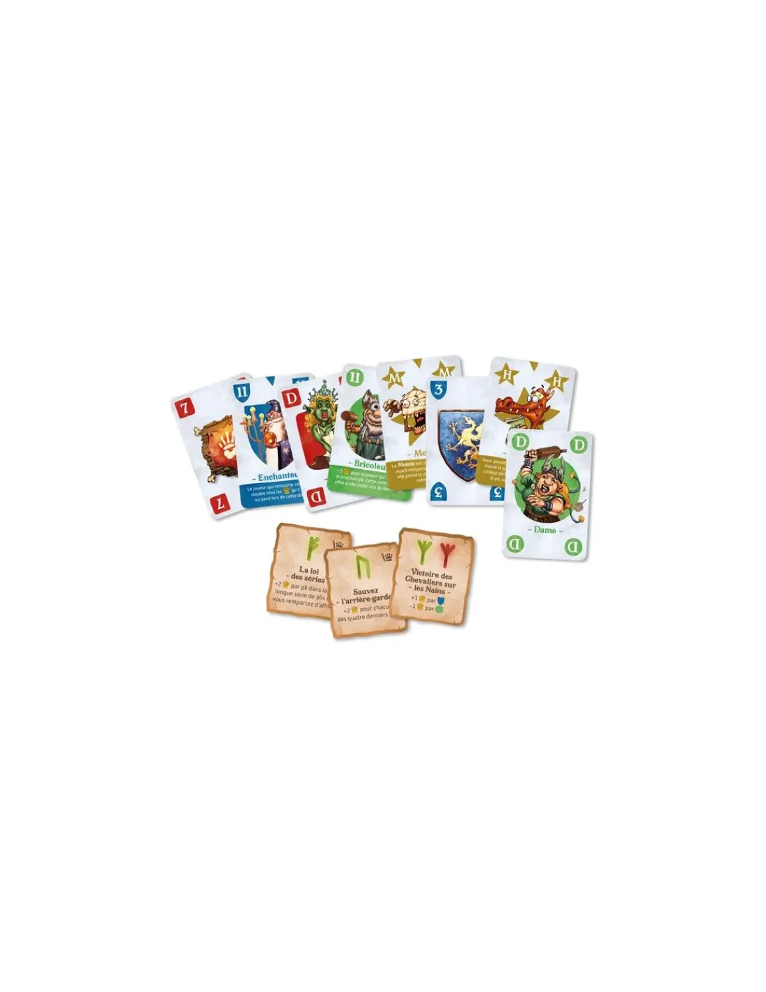 Ce jeu contient 39 cartes de base, 14 cartes spéciales, 20 tuiles Quête, 2 aides de jeu et 1 livret de règles.