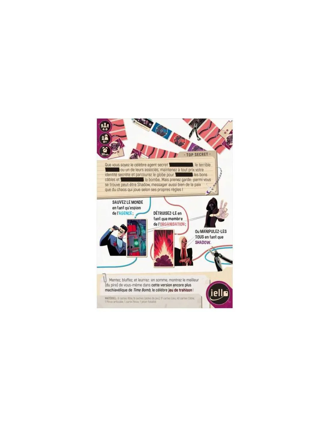 Découvrez le jeu Timebomb undercover de iello, un jeu de cartes pour jouer de 4 à 8 joueurs à partir de 8 ans qui vous plonge dans une lutte secrète pour sauver (ou menacer) la sécurité mondiale. Qui de Mister X, Jack Belleville, ou du mystérieux Shadow parviendra à atteindre ses objectifs ?