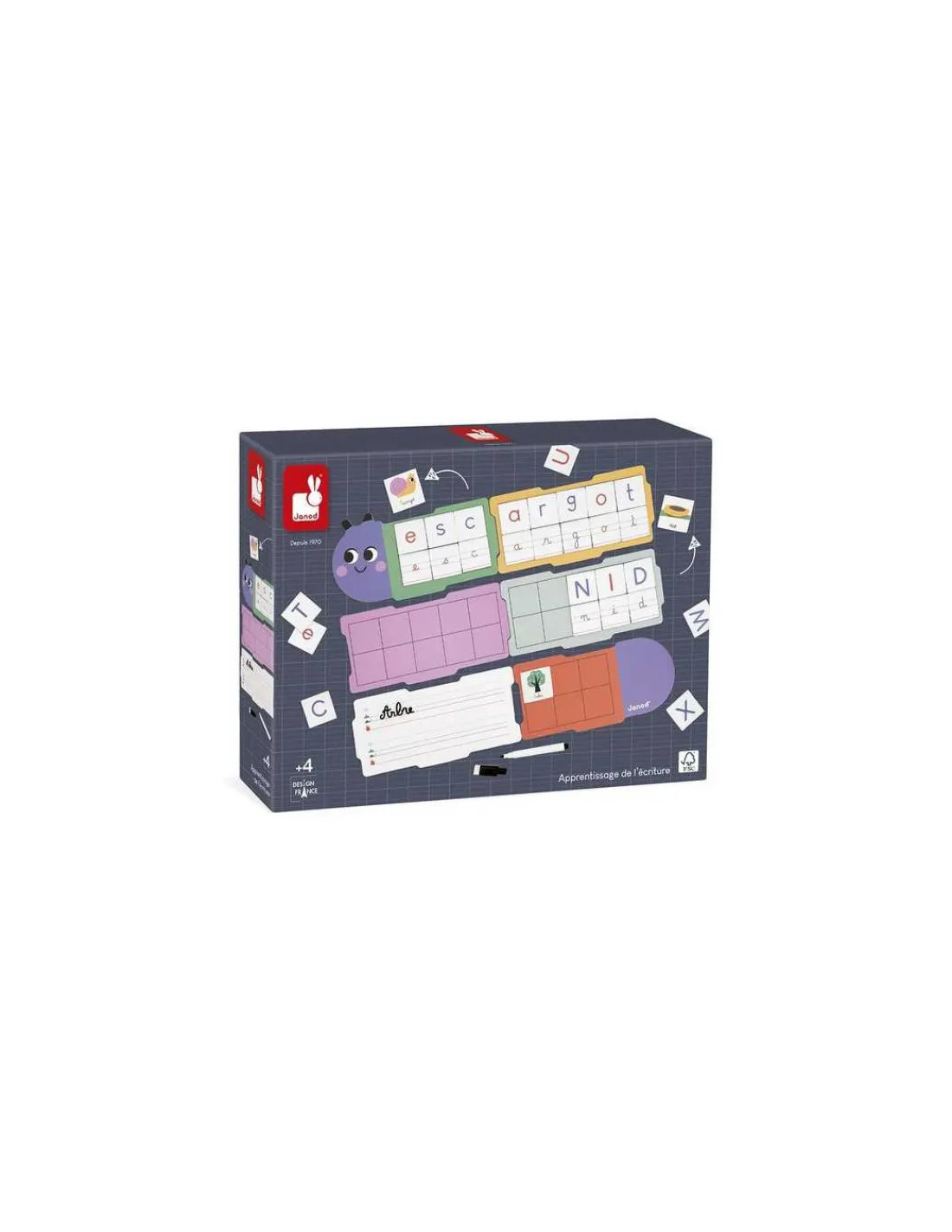 Découvrez le coffret Apprentissage de l’écriture de la gamme Pédagogie de Janod, un jeu éducatif conçu pour les enfants dès 4 ans.