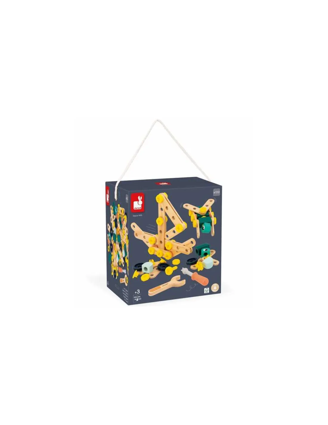 Découvrez le baril 100 pièces de la collection Brico’Kids de Janod, un coffret comprenant 100 pièces pour bricoler dès 3 ans.