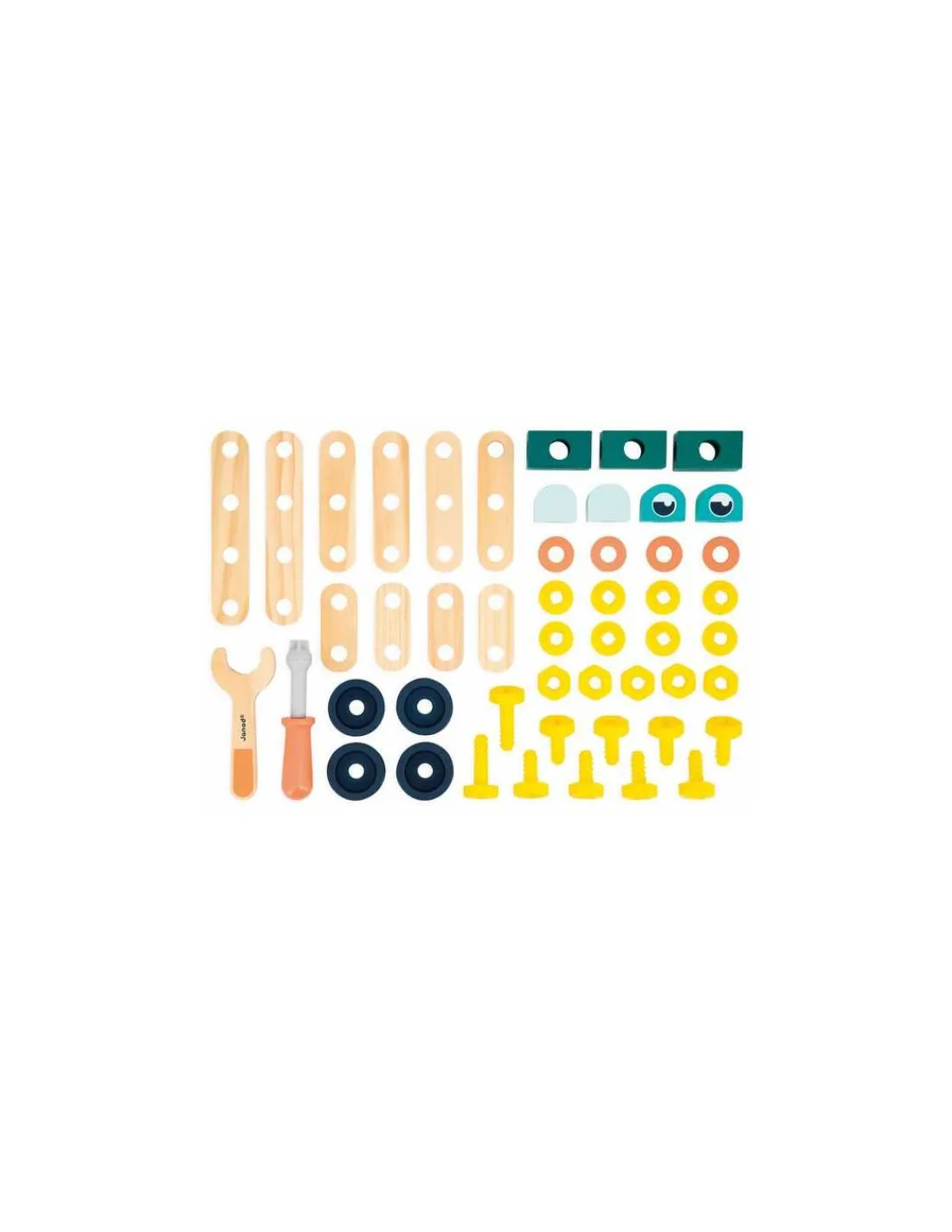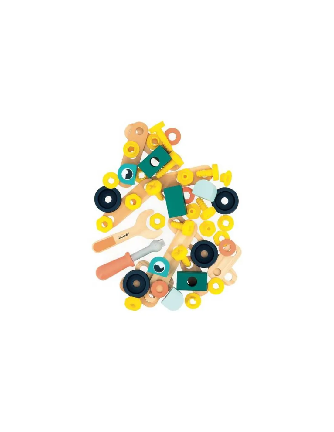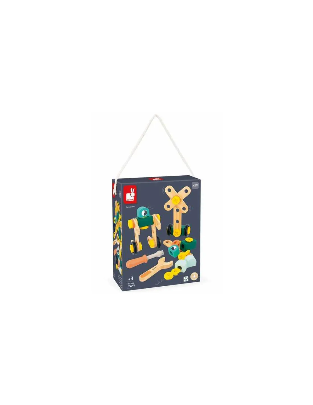 Découvrez le baril 50 pièces de la collection Brico’Kids de Janod, un coffret comprenant 50 pièces pour bricoler dès 3 ans.