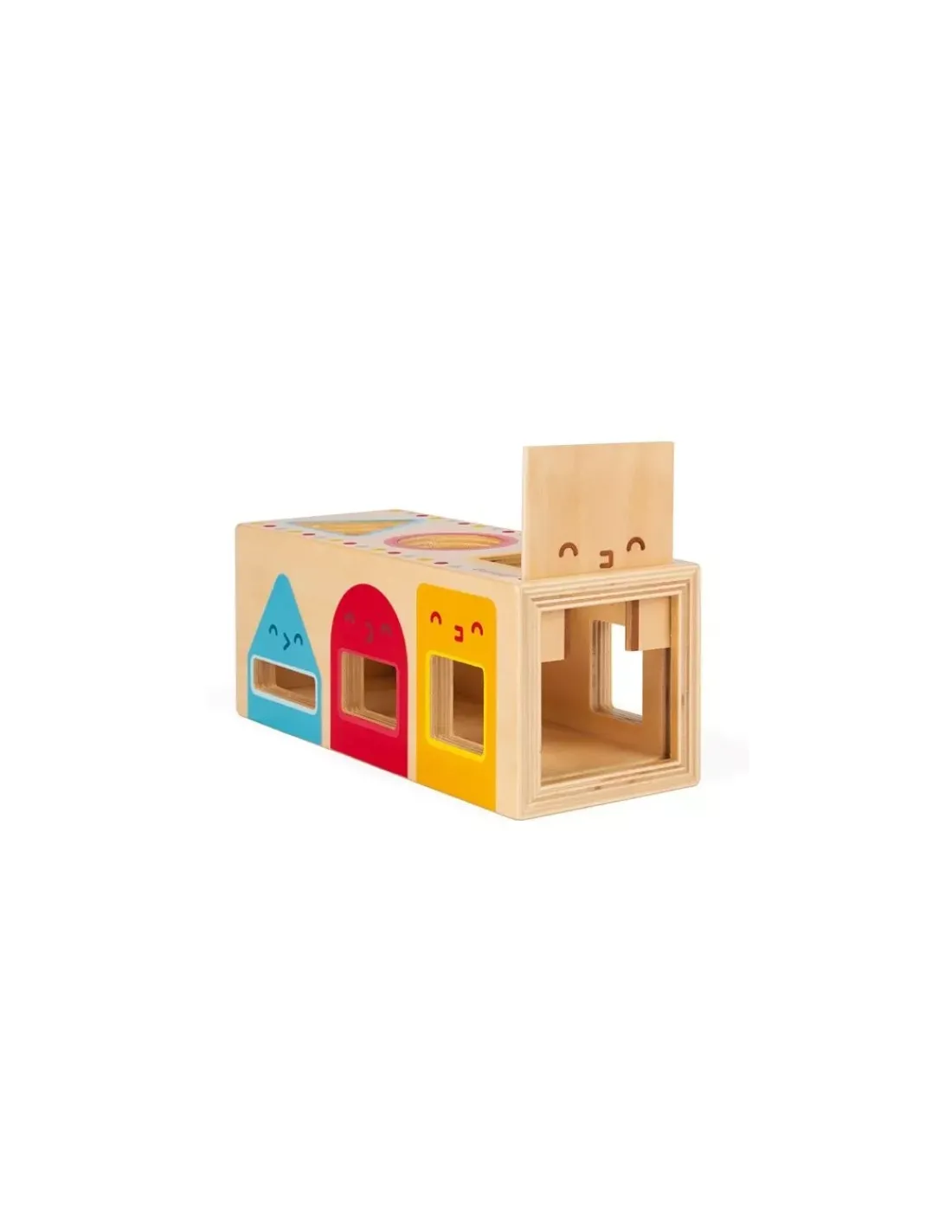 Les repères de couleurs sur chaque fenêtre aideront les enfants. Un puzzle d’encastrement éducatif qui permet de découvrir les formes et les couleurs tout en développant sa motricité fine.