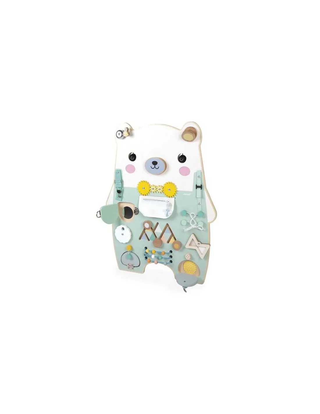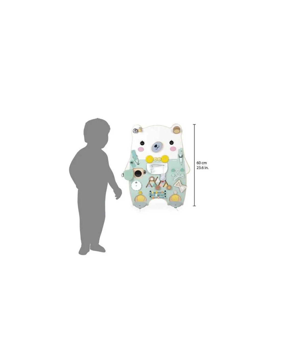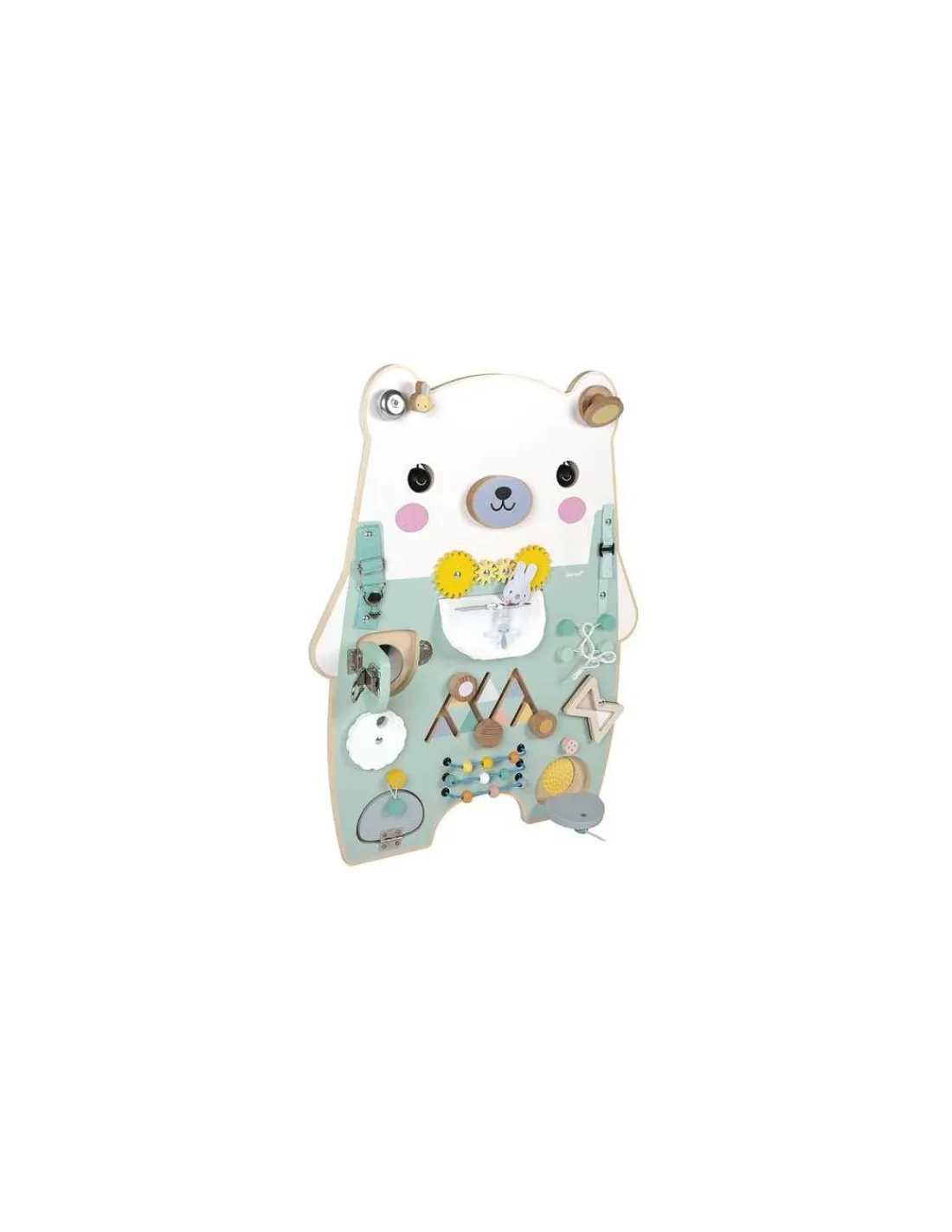 Découvrez le Busy Board Ourson de la collection Pure de Janod, un jouet en bois en forme d’ours pour éveiller les enfants dès 18 mois.