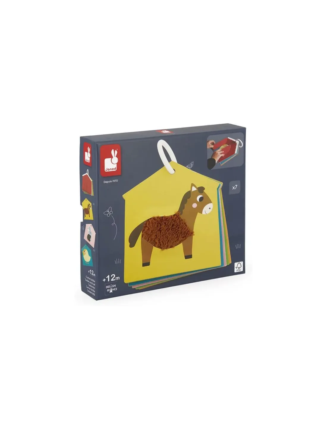 Découvrez les cartes tactiles Ferme de Janod, un jouet d’éveil comme un petit livre permettant aux enfants dès 12 mois de découvrir les animaux de la ferme et de stimuler leur sens du toucher.