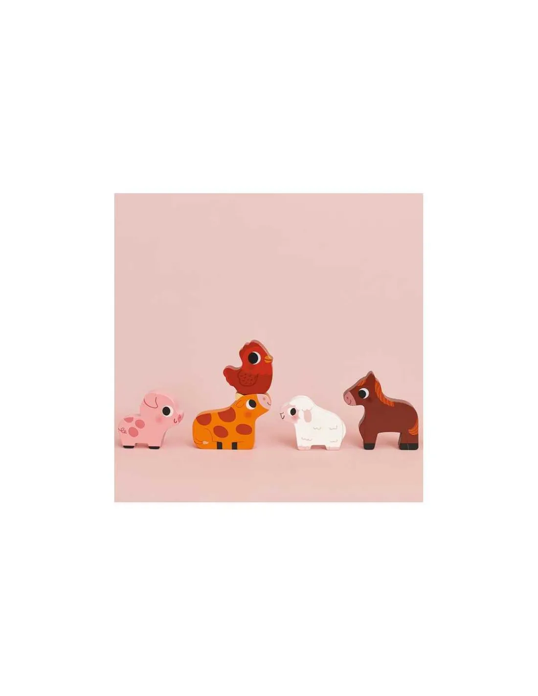 Un puzzle ludique et coloré avec un cochon, un cheval, une poule, une vache, un mouton, un lapin… Votre enfant pourra également s’amuser à mettre en scène ces animaux en bois car ils tiennent debout.