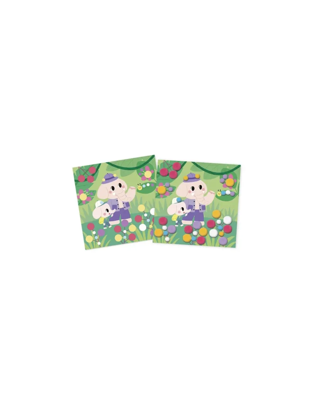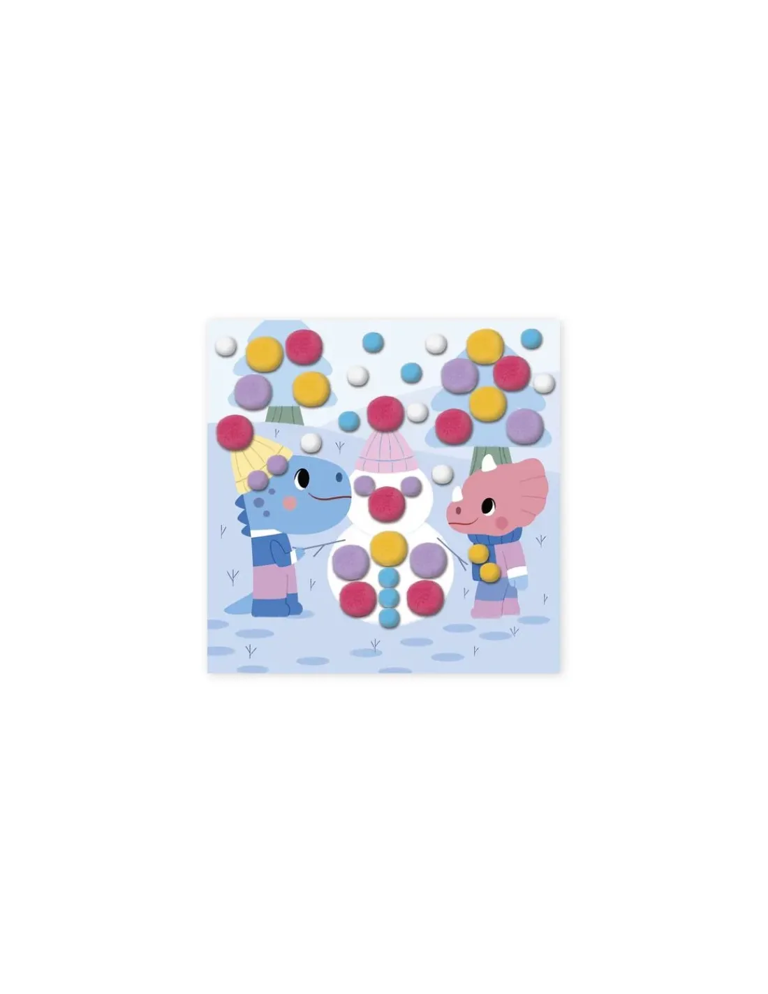 Les pompons, une activité créative très appréciée des tout-petits. C’est pour cela que Janod, en partenariat avec Hachette, a conçu ce coffret destiné aux filles et aux garçons de 3 ans. Votre enfant va s’amuser à compléter des tableaux colorés sur le thème des animaux : une girafe sur un bateau, des dinosaures réalisant un bonhomme de neige, des éléphants dans la jungle…