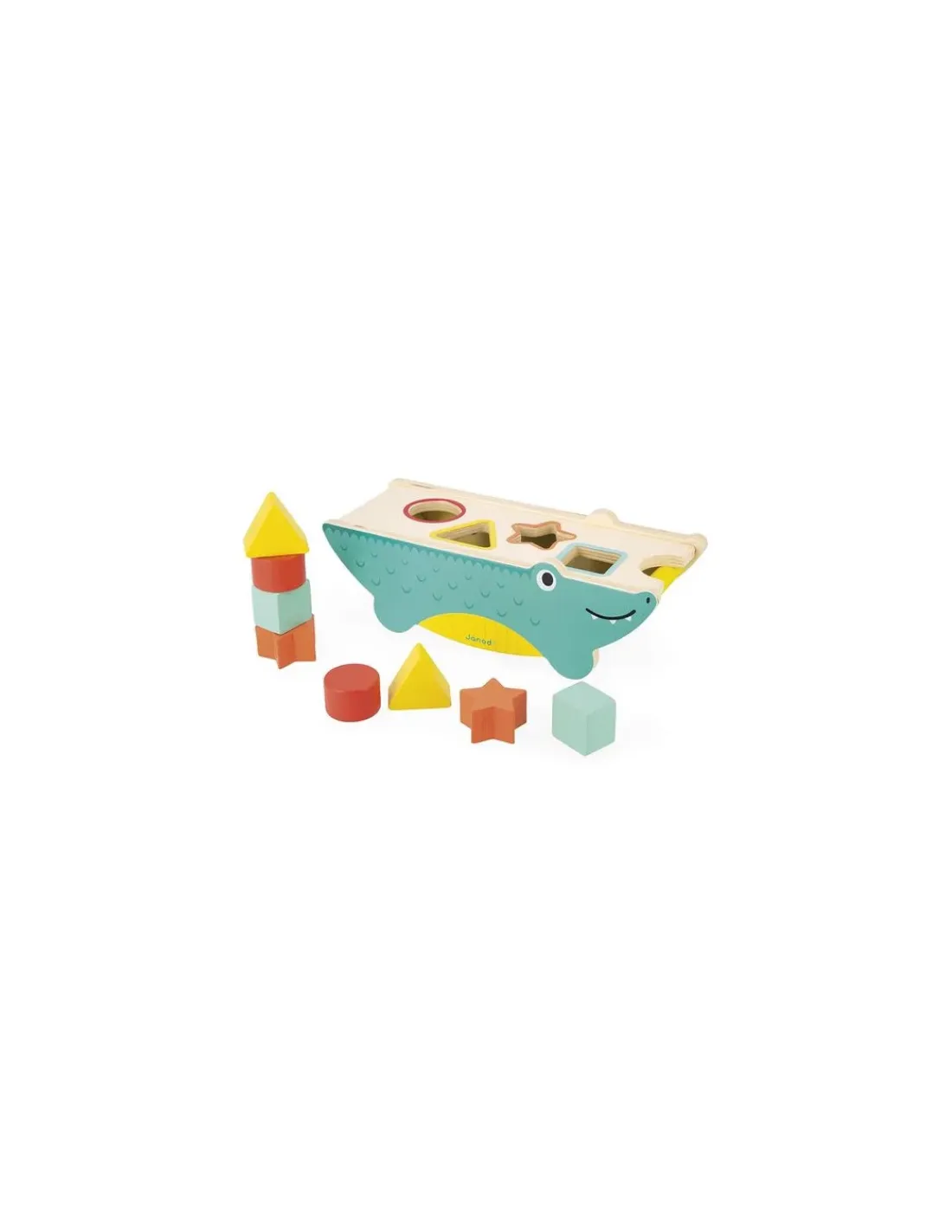 Découvrez le croco des formes de Janod, un jouet en bois éducatif de la collection Tropik sur les formes et les couleurs pour les enfants à partir de 1 an.