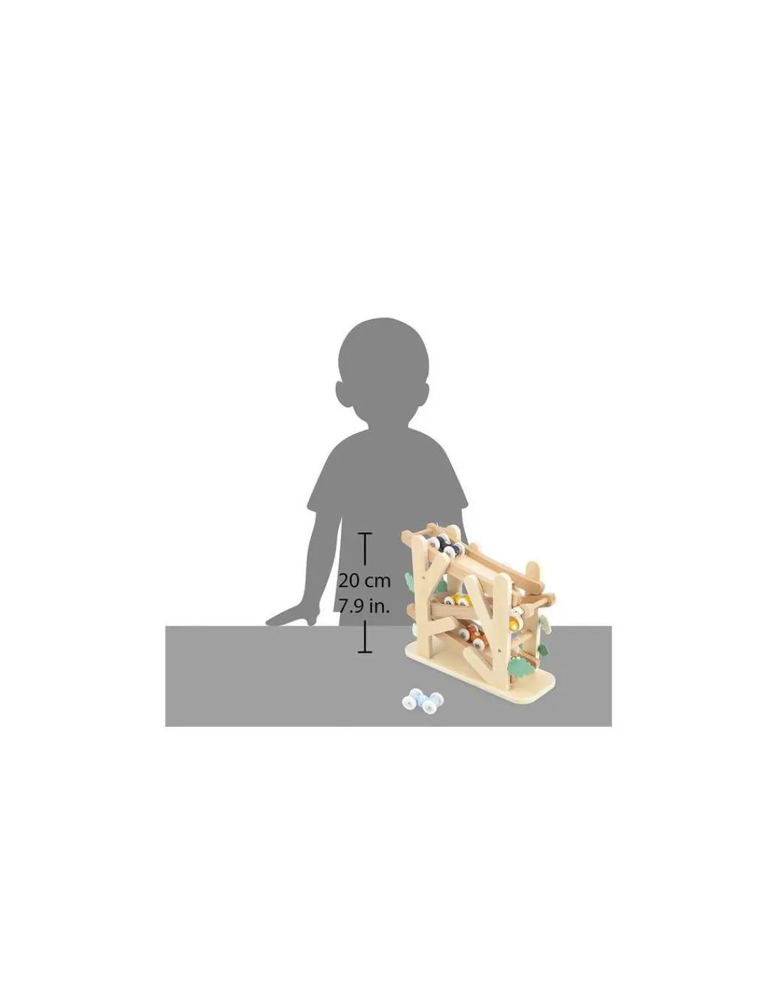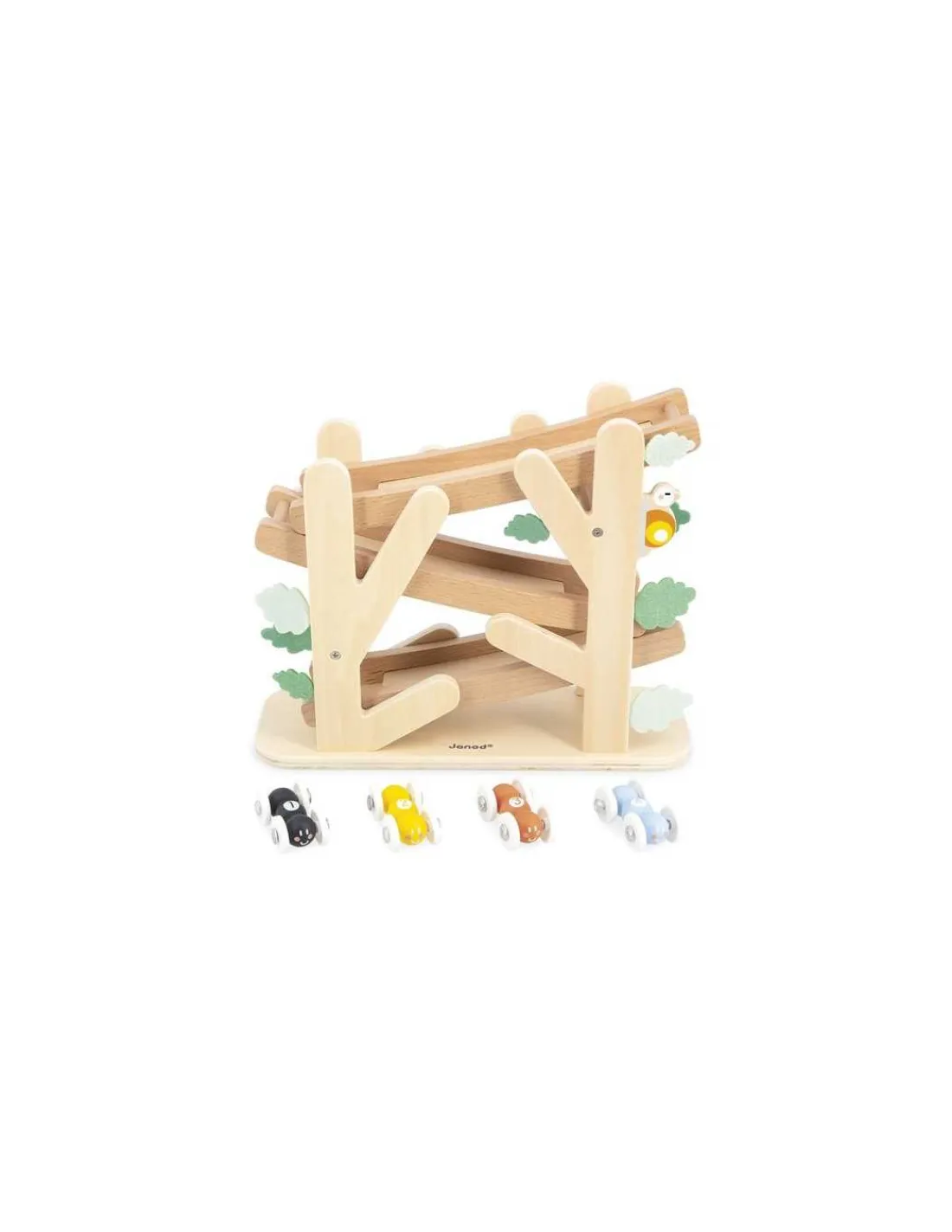 Découvrez le descendeur fourmis de Janod, un jouet d’éveil en bois pour les enfants dès 12 mois avec 4 voitures en forme de fourmis à faire descendre le long du chemin.