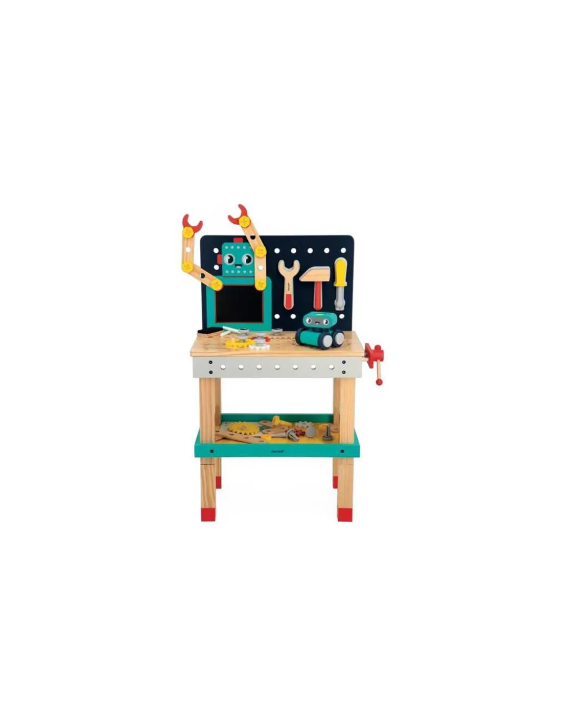 Découvrez le grand établi Robot de la collection Brico’Kids de Janod, un jouet en bois sur le thème du bricolage pour les enfants dès 3 ans.