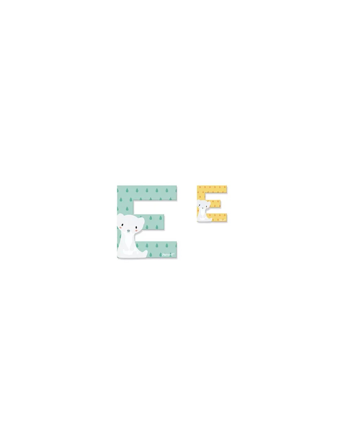 E… comme Emma ou comme Eliott! Découvrez la lettre E en bois de la collection Pure de Janod, une lettre décorative au graphisme épuré et peinte dans de jolies couleurs pastel.