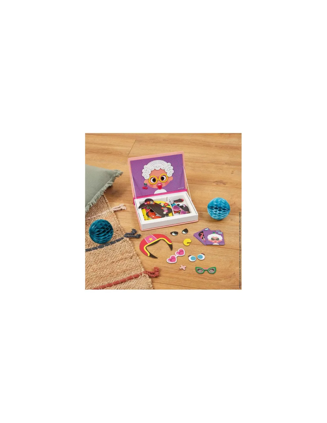 Découvrez le nouveau Magnetibook Crazy face fille de Janod, un jeu magnétique se présentant comme un livre avec un couvercle magnétique pour reproduire des visages rigolos avec des magnets.