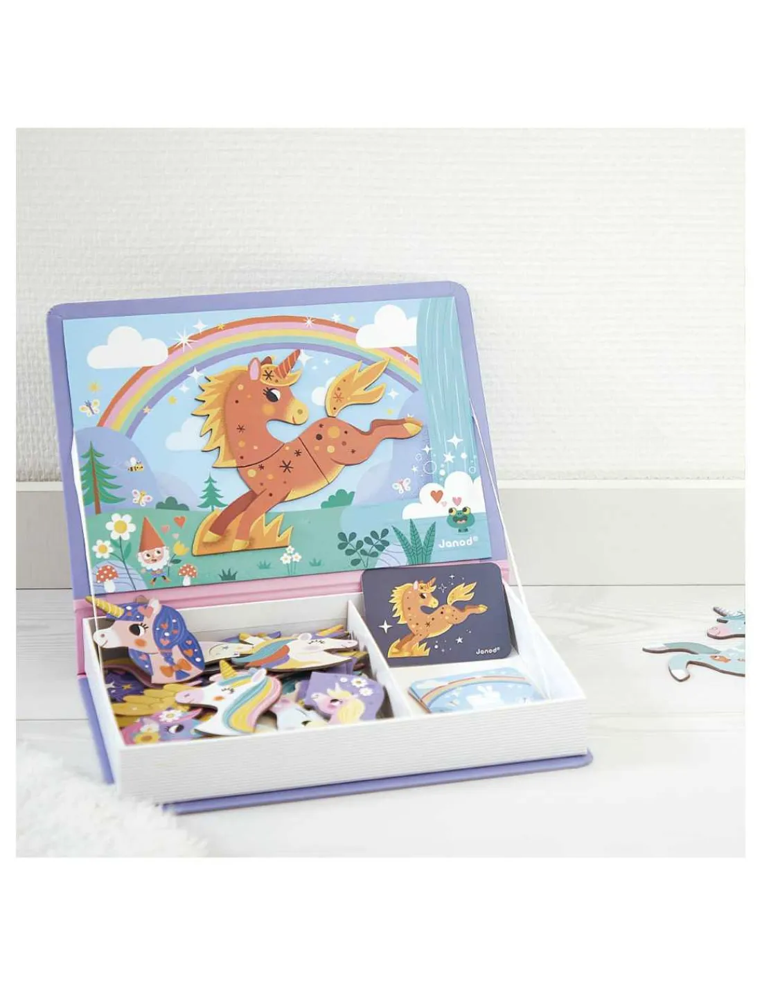 Découvrez le Magnetibook Licornes de Janod, un jeu éducatif magnétique pour les enfants de 3 à 8 ans, qui vont reconstituer de belles licornes avec des magnets.