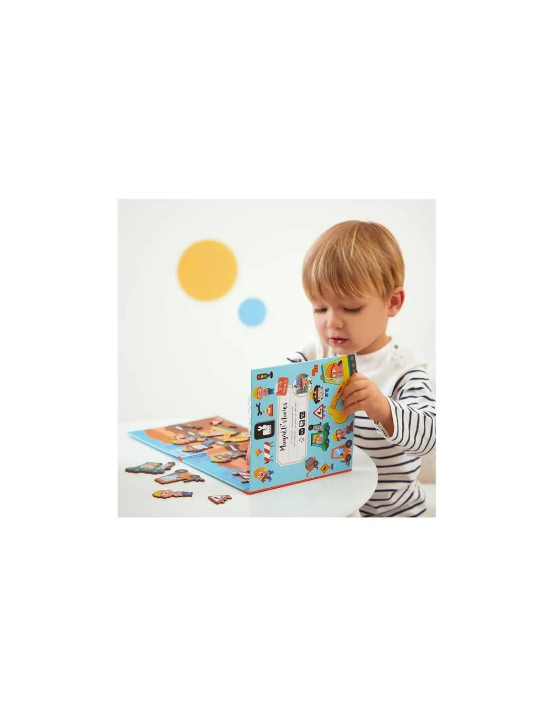 Découvrez le Magnéti’stories Le chantier de Janod, un jeu magnétique dans lequel les enfants dès 3 ans, vont s’amuser à imaginer des scènes grâce à des magnets sur le thème du chantier.